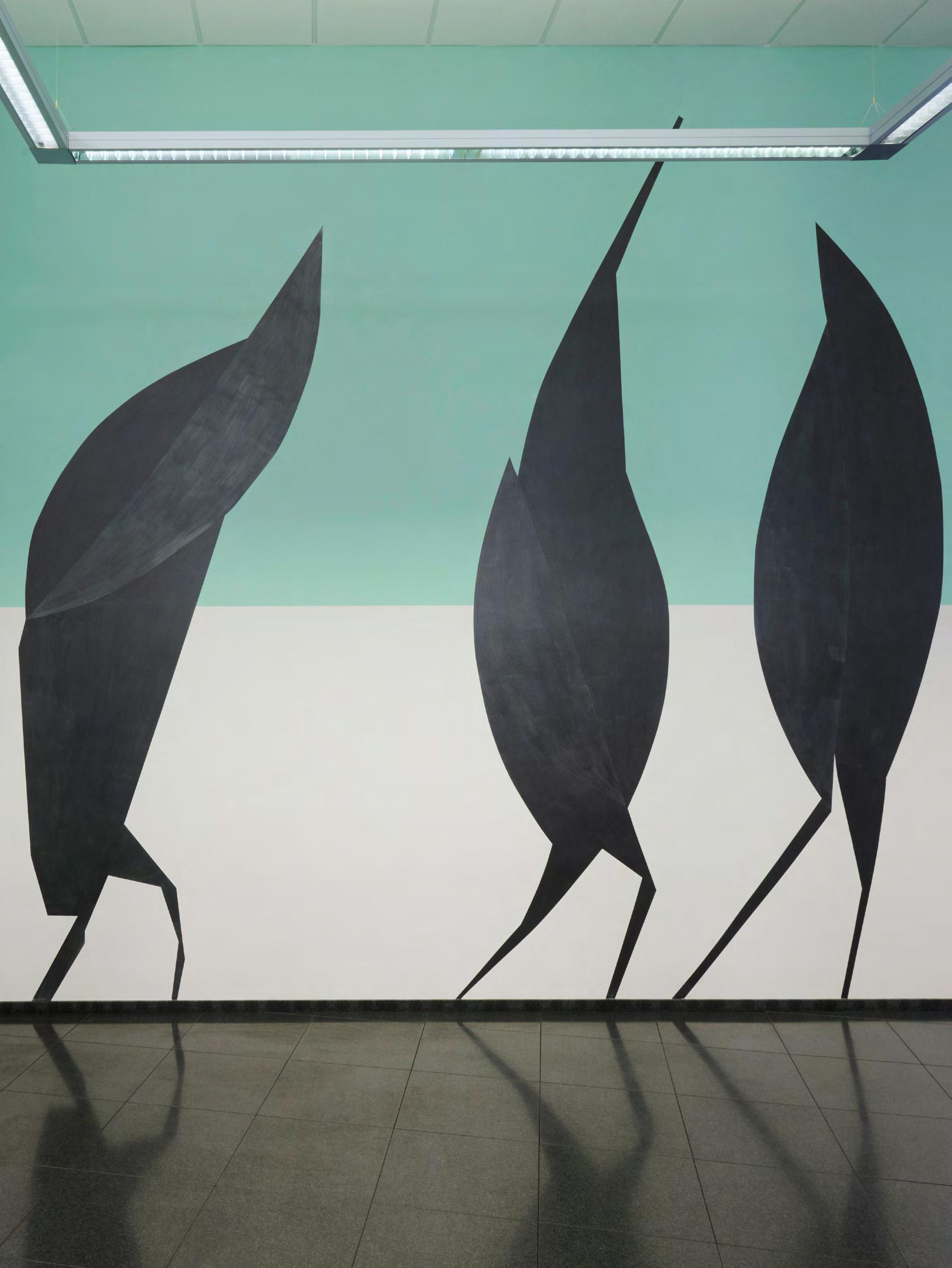 The genesis of Dannert’s practice lies in her interest in the architectural space and the medium of collage. These collages manifest themselves on paper, wall paintings, carpet inlays, curtains, projections, films and photographs. Through this she dissects architecture, examining it as to its sculptural potential, pointedly heightening particular features or else subverting preconceived structural assumptions. By altering the scale and shapes of the building materials depicted, Dannert produces creations that oscillate between the organic and the architectonic, illusion and reality.