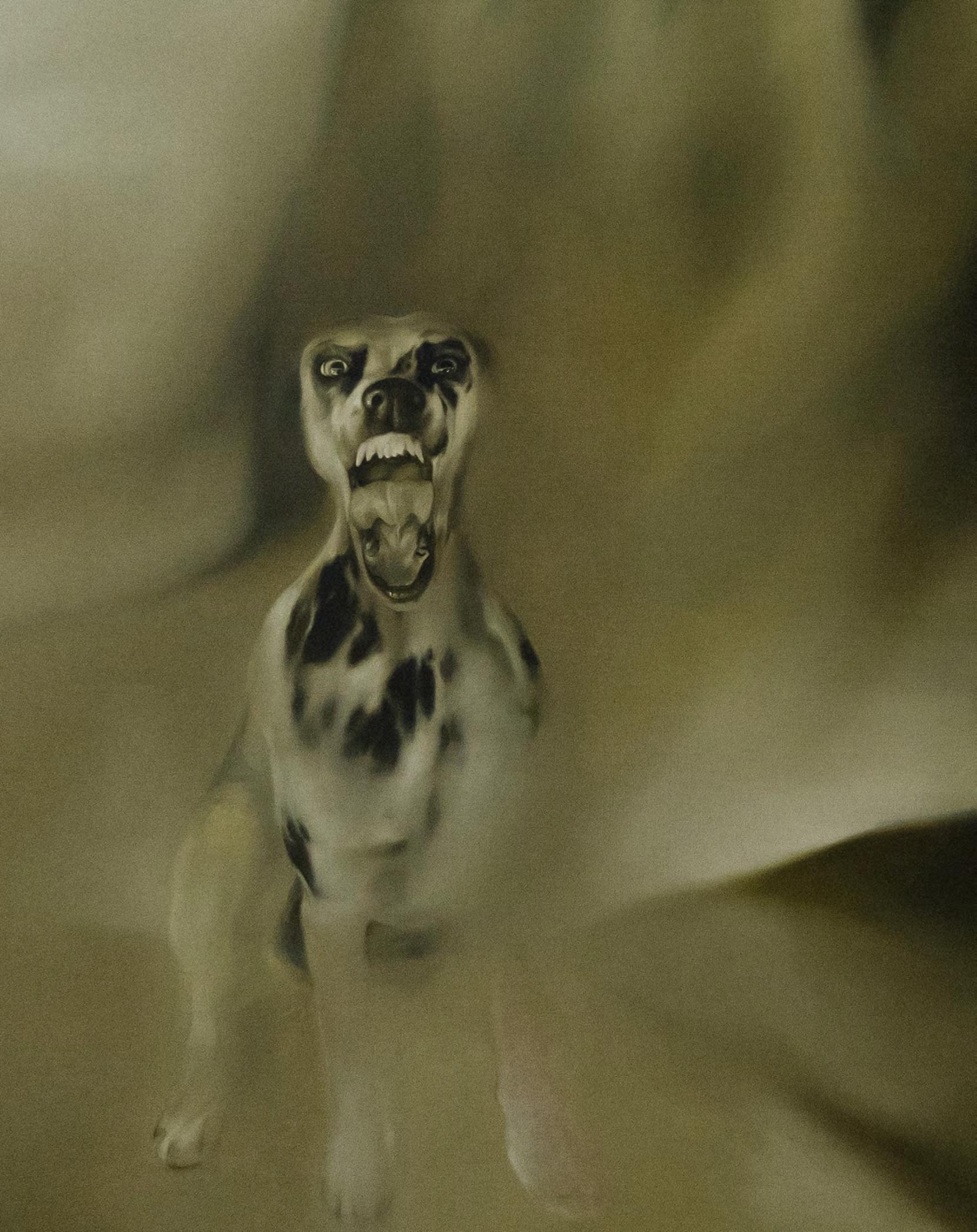 Aumayr’s painting makes violence felt, not just visible. Dogs with bared teeth appear repeatedly as ciphers of threatening masculinity. At the same time, her work is about certain bodies that endure and keep going until what feminist theorist Sara Ahmed calls “affective exhaustion.” A fatigue that arises from resistance itself, and which Aumayr processes in her new work Bis ihr genauso müde seid wie ich. / Männer (Hunde) (2025). Her series are thus shaped by repetition as resistance and exhaustion as a form of protest. “It happens because it does not stop happening,” says Aumayr.