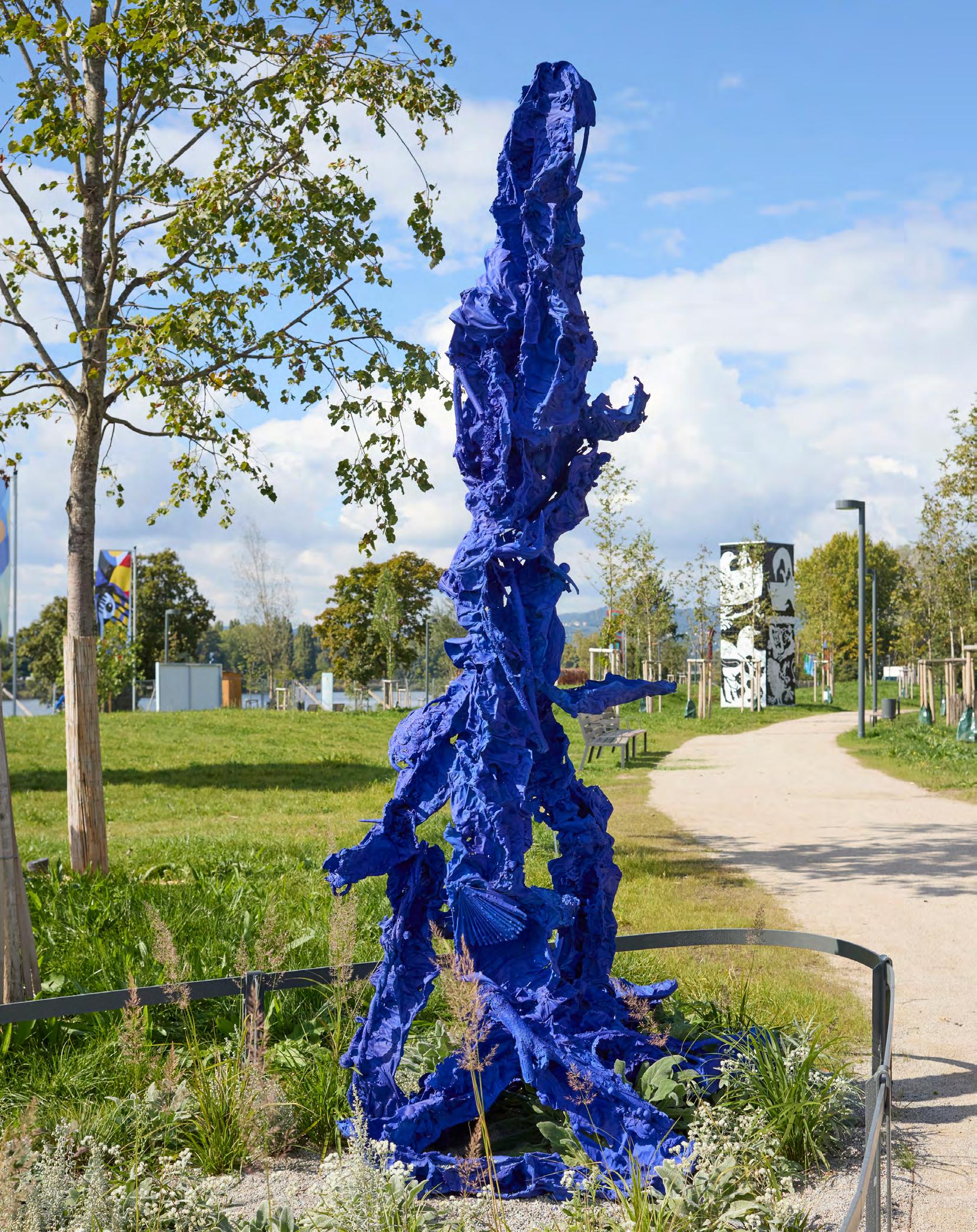 Karl Karner, Blue lumes cg, 2025, aluminum, 305 × 110 × 110 cm. Courtesy Bank Austria. Photo by Wolfgang Thaler