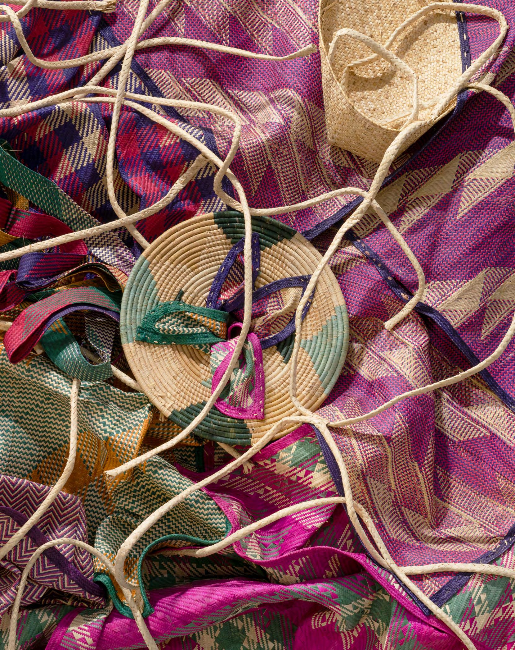 I (We are seen), 2022, palm leaves, raffia and mixed media, 162.6 × 215.9 × 30.5 cm. Courtesy the artist. Photo by Dawn Blackman