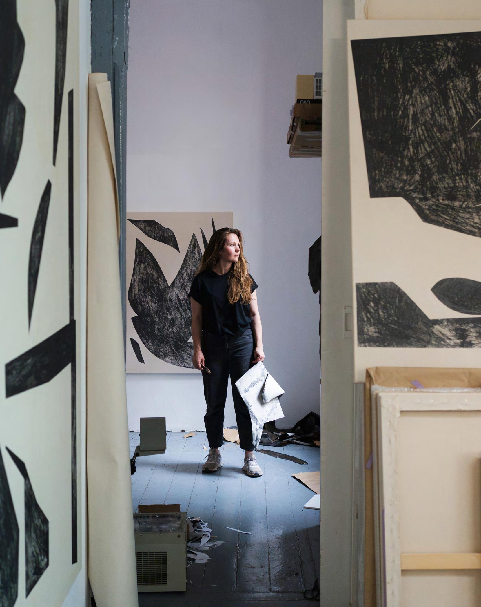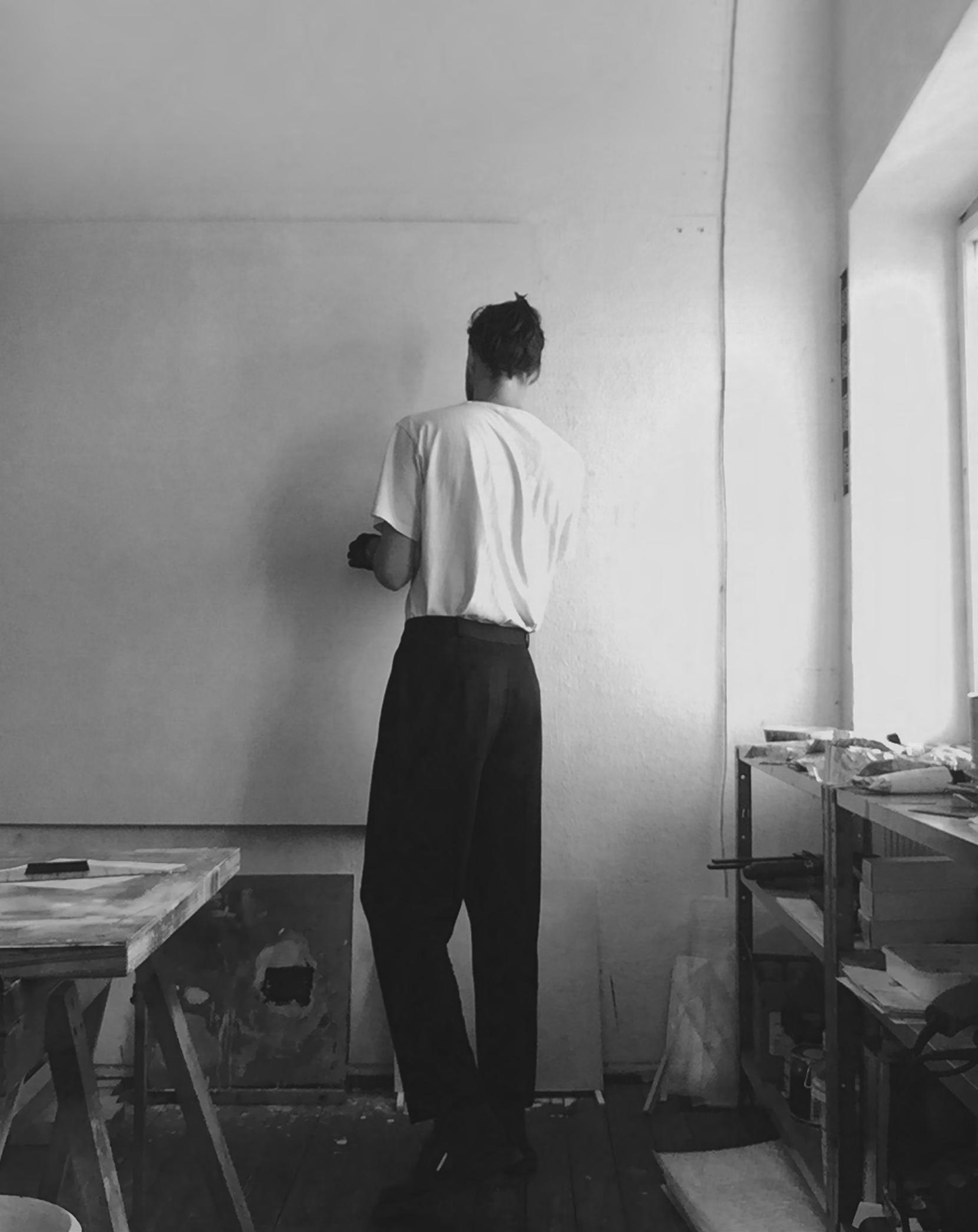 Within her collage practice Dannert creates the initial compositions and then replicates them using a photocopier. The loss in the clarity and other nuances created by this process consciously transforms the original image. By reducing the photocopies to black, white and grey tones she distances the works from the original material reality. After duplication, Dannert further determines the shapes and thus the greater degree of alienation of the original motifs. She continues these optical illusions in her installations by overlaying the existing architecture with photographic architectural fragments, thus alienating spaces and the viewers experience of the space.