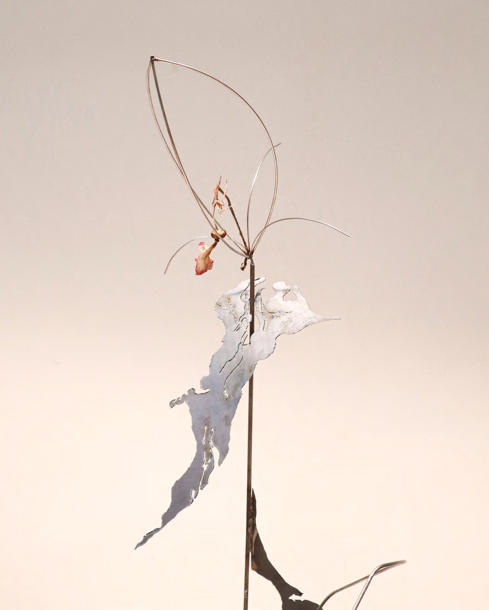Detail: So Young Park, Visitors with no names, 2025, metal structure combined with metal plate and amaryllis flower. Courtesy the artist. Photo by So Young Park