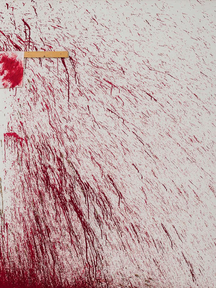 Hermann Nitsch, Schüttbild, 2009, Acryl auf Leinwand mit Mahlhemd, photo Manuel Carreon Lopez