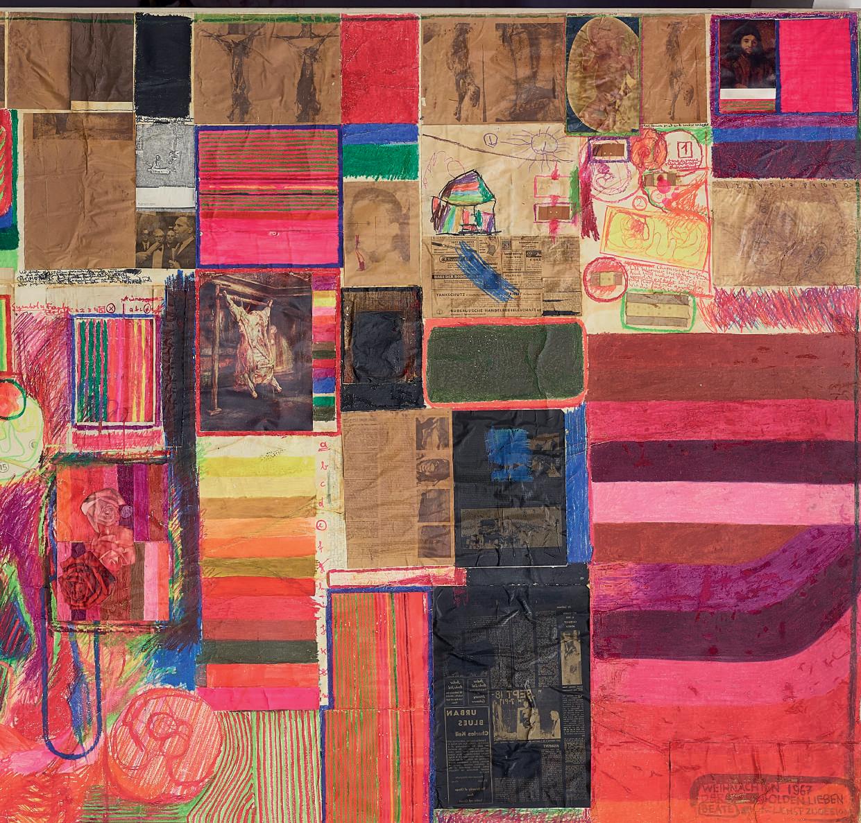Hermann Nitsch, Entwurf einer unterirdischen Stadt, 1974, Kugelschreiber auf neun zusammengeklebten Blatt Papier, 89 x 63 cm Privatsammlung photo UMJ/N. Lackner © Bildrecht, Wien 2024