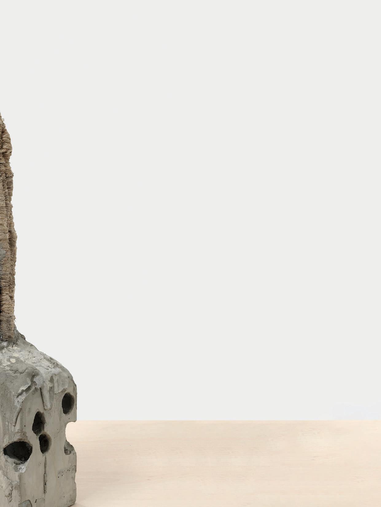 Soojin Kang, Untitled, 2024, Raw silk, hemp, jute, cotton, metal, concrete , 77x15,5 x 23,3cm, Courtesy of the Artist and Gathering photo Markus Schroder
