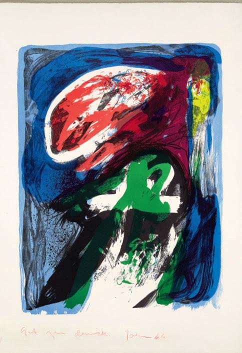 I mit galleri er vi så heldige at eje to af hans violiner. Kort tid efter Jorns mesterlige litografier var færdigtrykte i St. Gallen, lykkedes det min far Willy Omme at erhverve 80 prøvetryk signeret af Jorn.