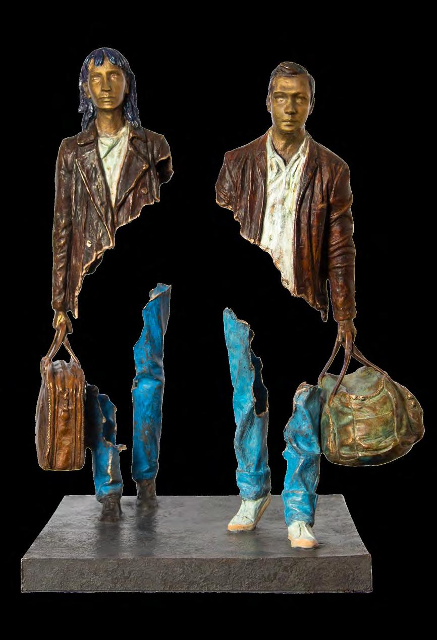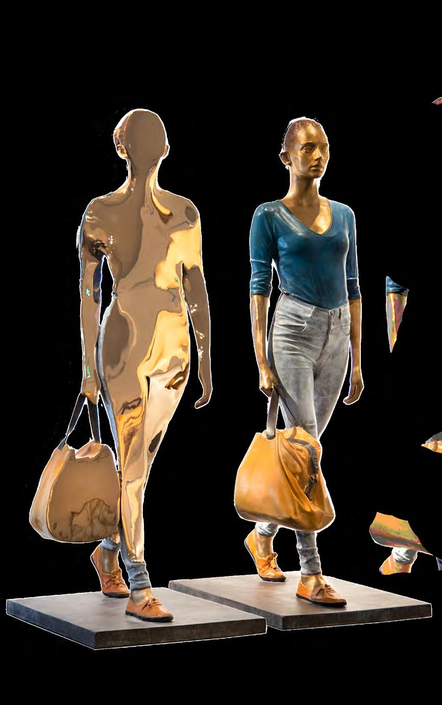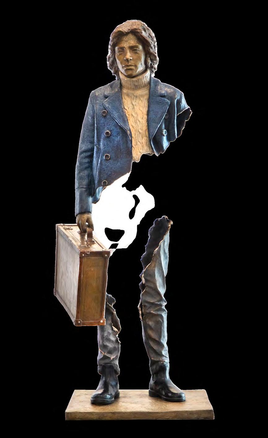 Né au Maroc en 1960, il s’est initié aux techniques du bronze dans les années 1990 avant de mettre au point, au début des années 2000, ces silhouettes de personnages qui marchent, un sac à la main, fendues par le milieu dans un geste de sculpture ultime qui déchire la matière. Ces personnages, figés dans un voyage sans destination, sont restés au coeur de la passion créatrice de Bruno Catalano jusqu’à aujourd’hui. En étroite collaboration depuis plus de 10 ans, c’est naturellement que les Galeries Bartoux proposent leur écrin de 3 niveaux au coeur de l’avenue Matignon pour cette expérience artistique immersive unique.