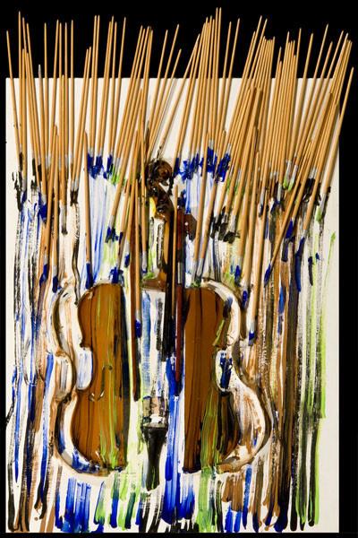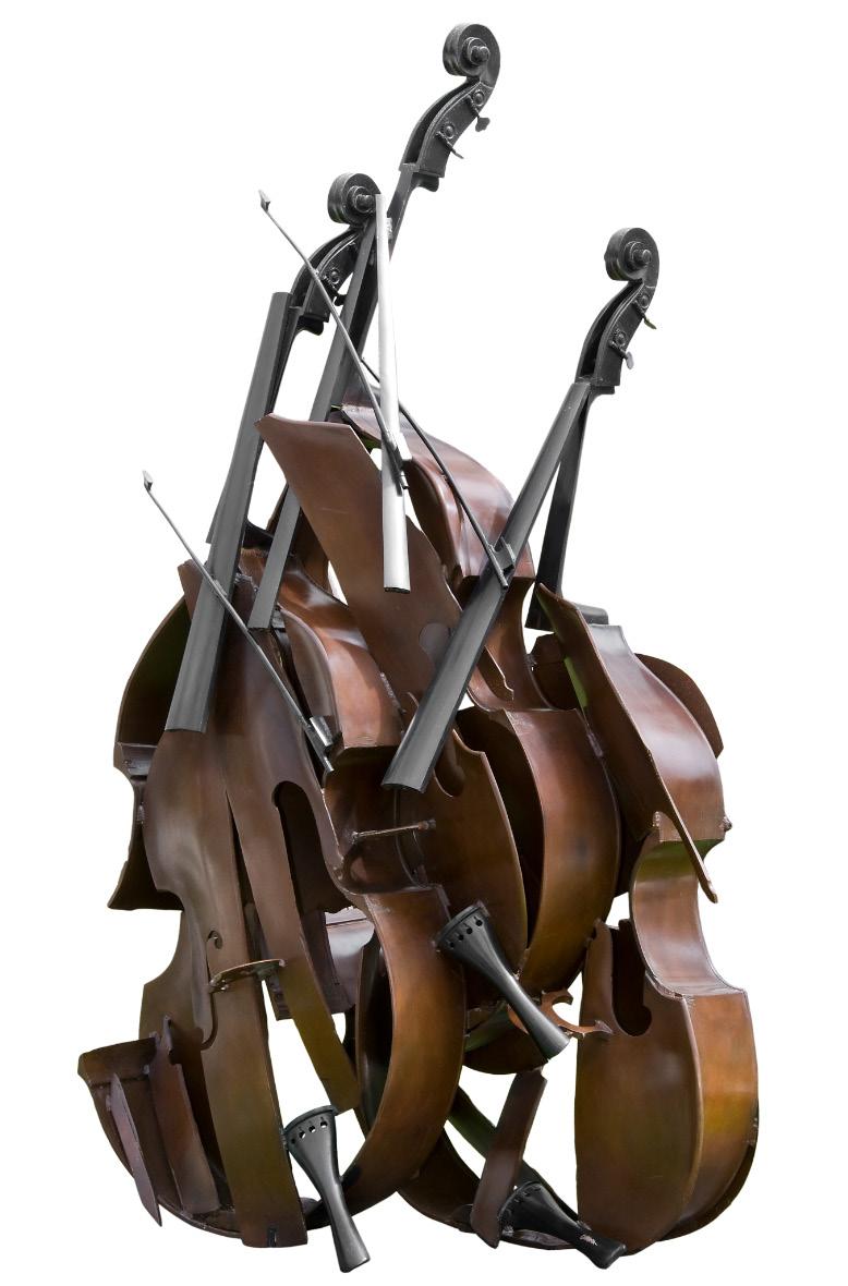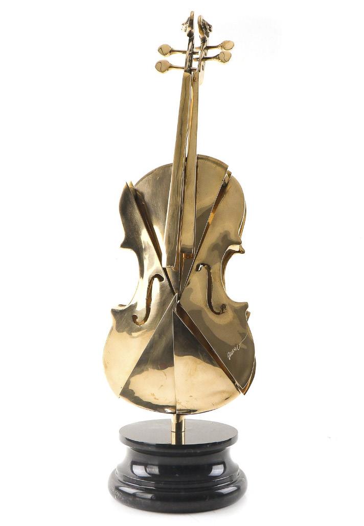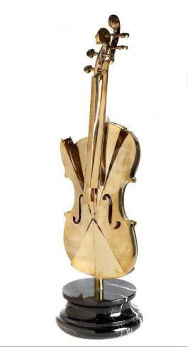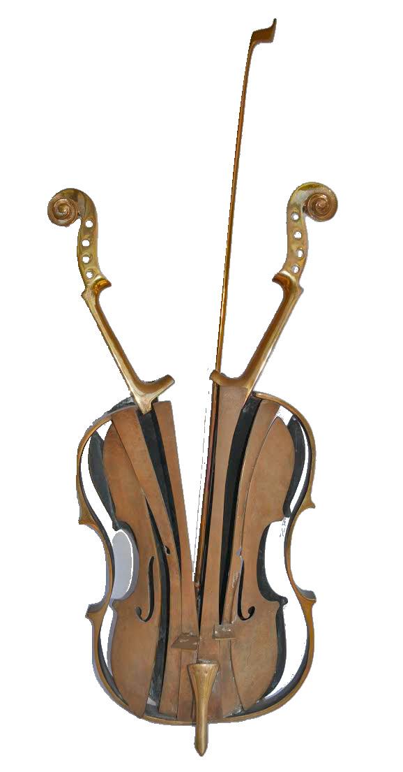 Vertically sliced violins with polished bronze bow Edition 6/8