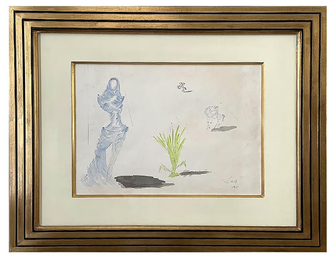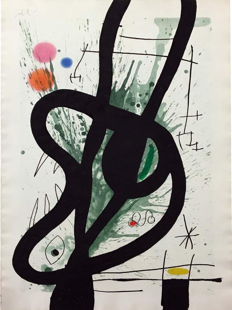 Born in Barcelona in 1893, Joan Miró began his artistic studies at the early age of fourteen, at the Barcelona Academy of Fine Arts. In 1917, he held his first solo exhibition, the same year he met Pablo Picasso and Francis Picabia. Although Joan Miró’s early works were influenced by several movements of the time, including Fauvism, Cubism and Dadaism, it was among the Surrealists, whose first manifesto he signed in 1924, that he became best known. Throughout his career, despite occasional returns to figuration or total abstraction, Miró remained faithful to the fundamental principle of Surrealism: to work with the intention of liberating the creative powers of the unconscious from the constraints of logic and reason. Much of Joan Miró’s work is imbued with a charming sense of playfulness, although the outbreak of the Spanish Civil War inspired more solemn and melancholy motifs in his work.