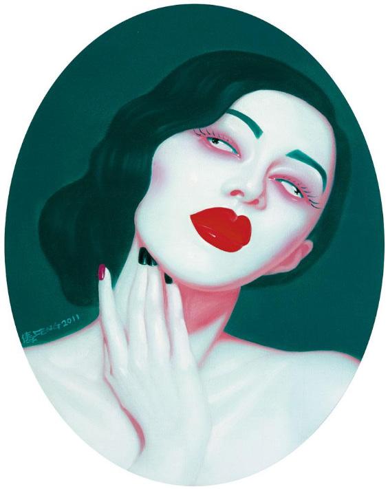 Shanghai et à la ‘Tilton Gallery’ de New York. Born in Sichuan province (China) in 1968, Feng Zheng-jie (Chinese, b. 1968) is a contemporary painter. He studied at the Sichuan Academy of Fine Arts, where he obtained a Bachelor’s degree in Fine Arts Education in 1992 and a Master’s degree in Oil Painting in 1995. Feng Zheng-Jie’s work is often compared to Andy Warhol’s serigraphs, with their use of unnaturally bright colors and flattened perspective. His billboard-inspired portraits are generally massive, depicting glamorous-looking women with windswept hair and luscious red lips. His models’ eyes - considered her artistic signature - are mysteriously empty and wandering, representing the artist’s critique of the emptiness associated with consumer society. His portraits are immediately recognizable by their palette of rich reds, electric pinks, evergreens and deep teals.