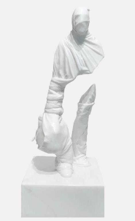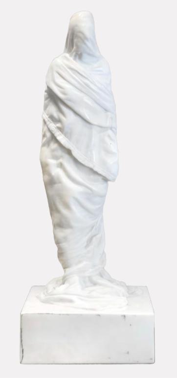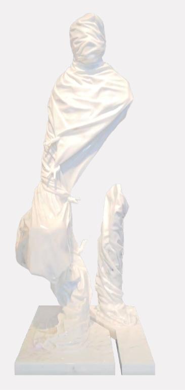 Ce solo show propose également une approche du drapé que Bruno Catalano utilise dans ses marbres. Tous les soirs, le sculpteur recouvre ses modèles en argile d’un linge afin d’éviter qu’ils ne sèchent. Vecteur de modernité et d’expressivité, le textile inscrit une sculpture dans son époque tout en lui conférant une dimension universelle.