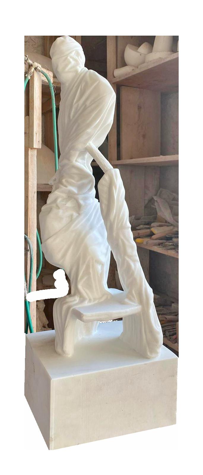 This solo show also showcases Bruno Catalano’s use of drapery in his marbles. Every evening, the sculptor covers his clay models with a cloth to prevent them from drying out. Vector of modernity and expressiveness, textiles inscribe a sculpture in its own era, as well as granting it a universal dimension.