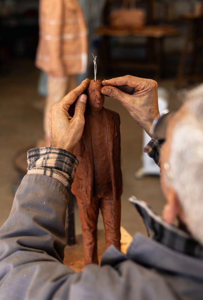 He is still far from art, but this experience will remain a determining factor in the construction of his sensitivity. It was with friends that he first discovered the craft of leather masks, then he devoted himself to clay from 1991. Determined to master this material, he enrolled in a modelling and drawing workshop, and completed his self-taught training by reading. Step by step, Bruno Catalano set up his own workshop, acquired his own kiln, and finally made sculpture his main activity. It gained official recognition when, in 2001, the town hall of the 5th arrondissement of Marseille entrusted him with the execution of a bust of Yves Montand to decorate the square dedicated to him. He thus inaugurated a production of public works of art which will become the heart of his work.