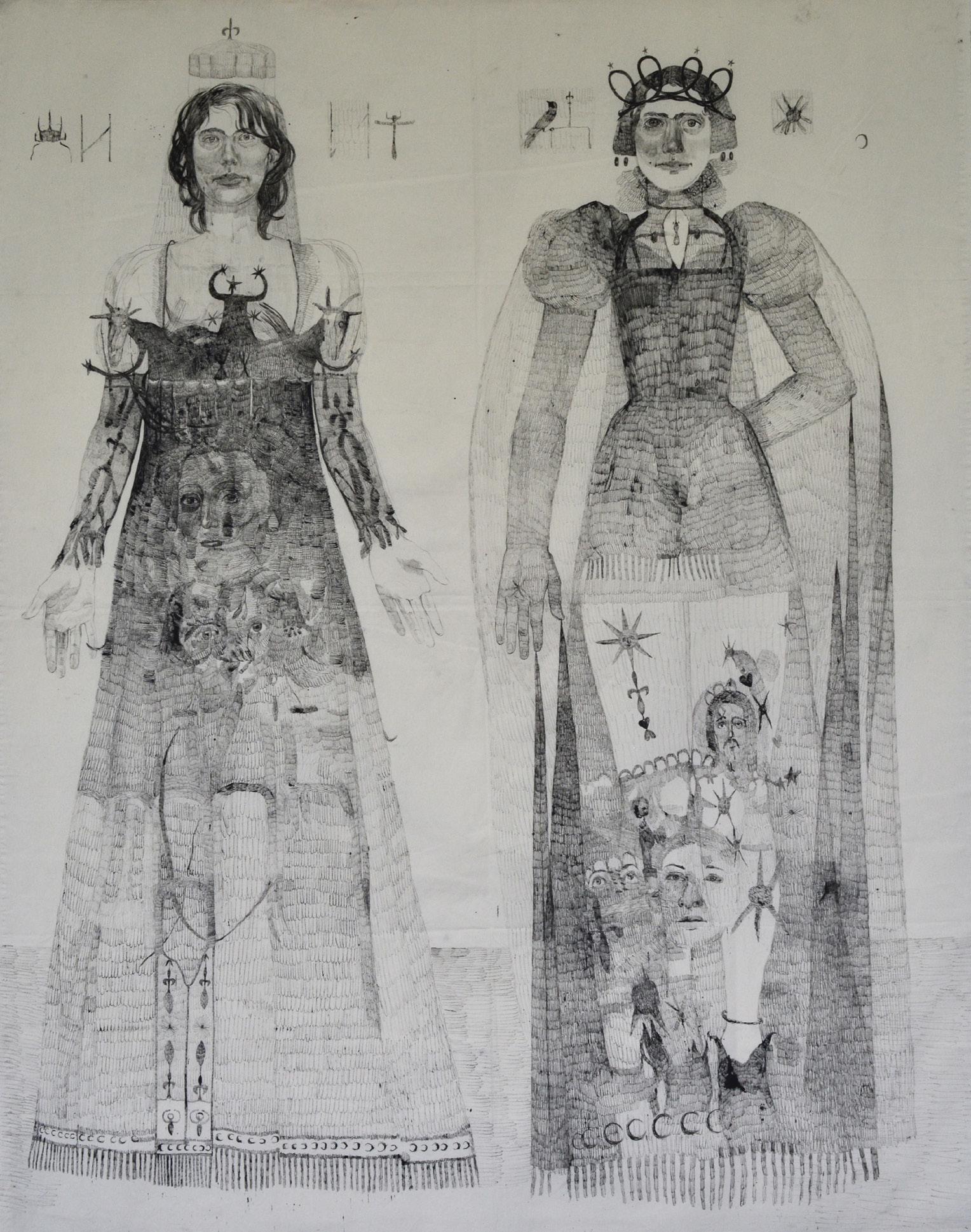 Likovni i ikonografski elementi, preuzeti iz hrišćanske likovne tradicije, stvaraju određeni duhovni dojam, kojim zrače radovi iz serije. Odežde nalik vladarskim i svešteničkim, poput mitre (pokrivač za glavu u obliku krune koji su nosili vrhovni poglavari pravoslavnog sveta), tragovi nečega nalik na rizu i epitrahilj se takođe mogu uočiti u amalgamu motiva iskorišćenih na kostimima prikazanih likova, a sve to u kombinaciji sa simbolima poput meseca, cveća i ptica što pruža određeni unikatni hibridni likovni izraz.