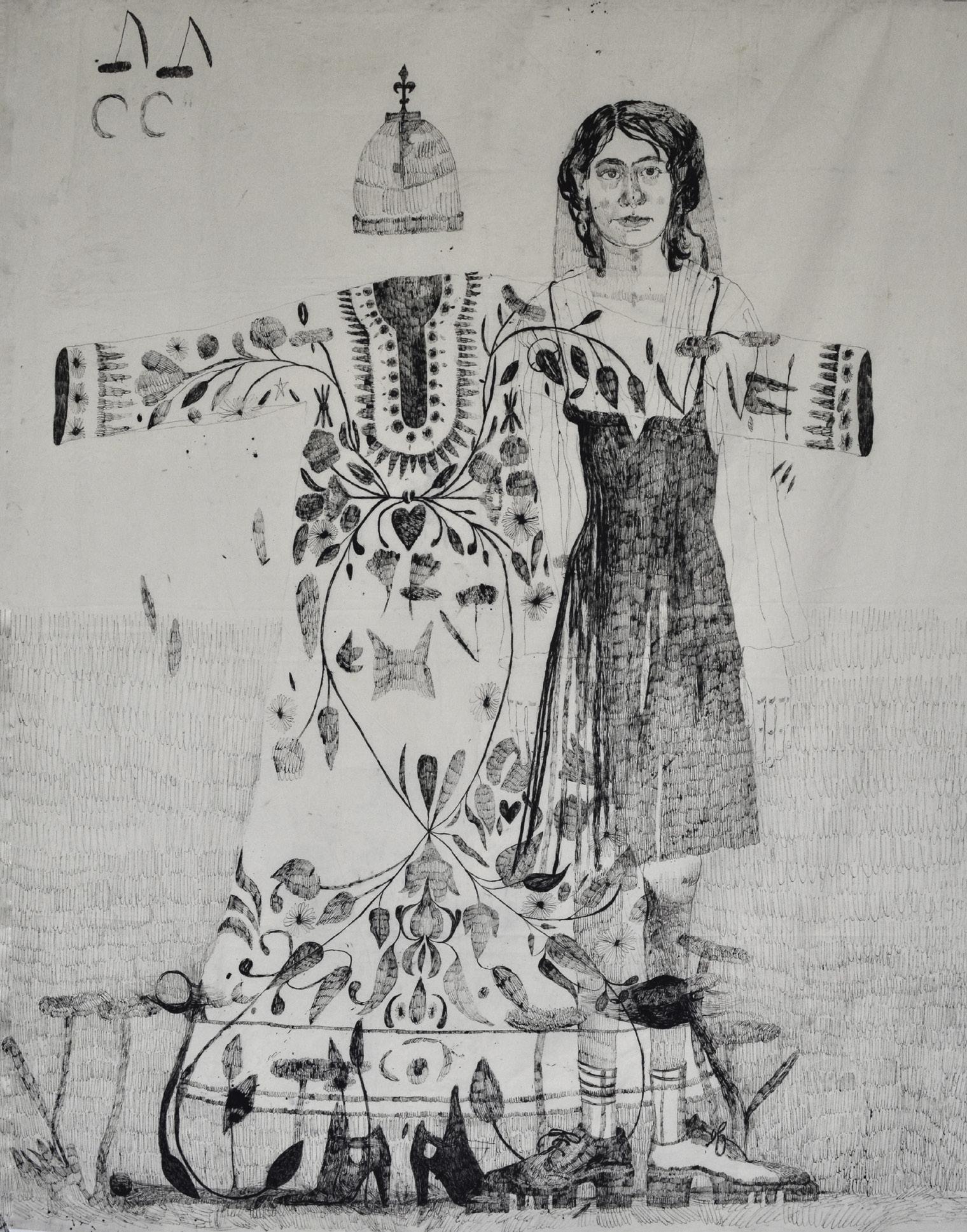 Simićeva asimiluje prošlost i sadašnjost kroz uvođenje elemenata istorijskog kostima, ukrasa i nošnji. Sugestivni nazivi radova poput “Ona”, “Najgora”, “Njegova majka” ili “Zabranjena” problematizuju ulogu žene u društvu i pokušaj sagledavanja fenomena ženskog iskustva, ponajviše nemoći, ali i borbe, vekovima unazad pa do danas. Posmatranje žene isključivo u ulozi nečije majke, supruge, sestre sa jedne strane, ili ljubavnice, prostitutke ili veštice sa druge, neutrališe njeno lično, intelektualno i samostalno biće. Na ovim radovima kreiran je feministički prostor u kojem nema potrebe da vrednost žene bude prepoznata samo u odnosu koji ona ostvaruje sa muškarcima u svojoj okolini.