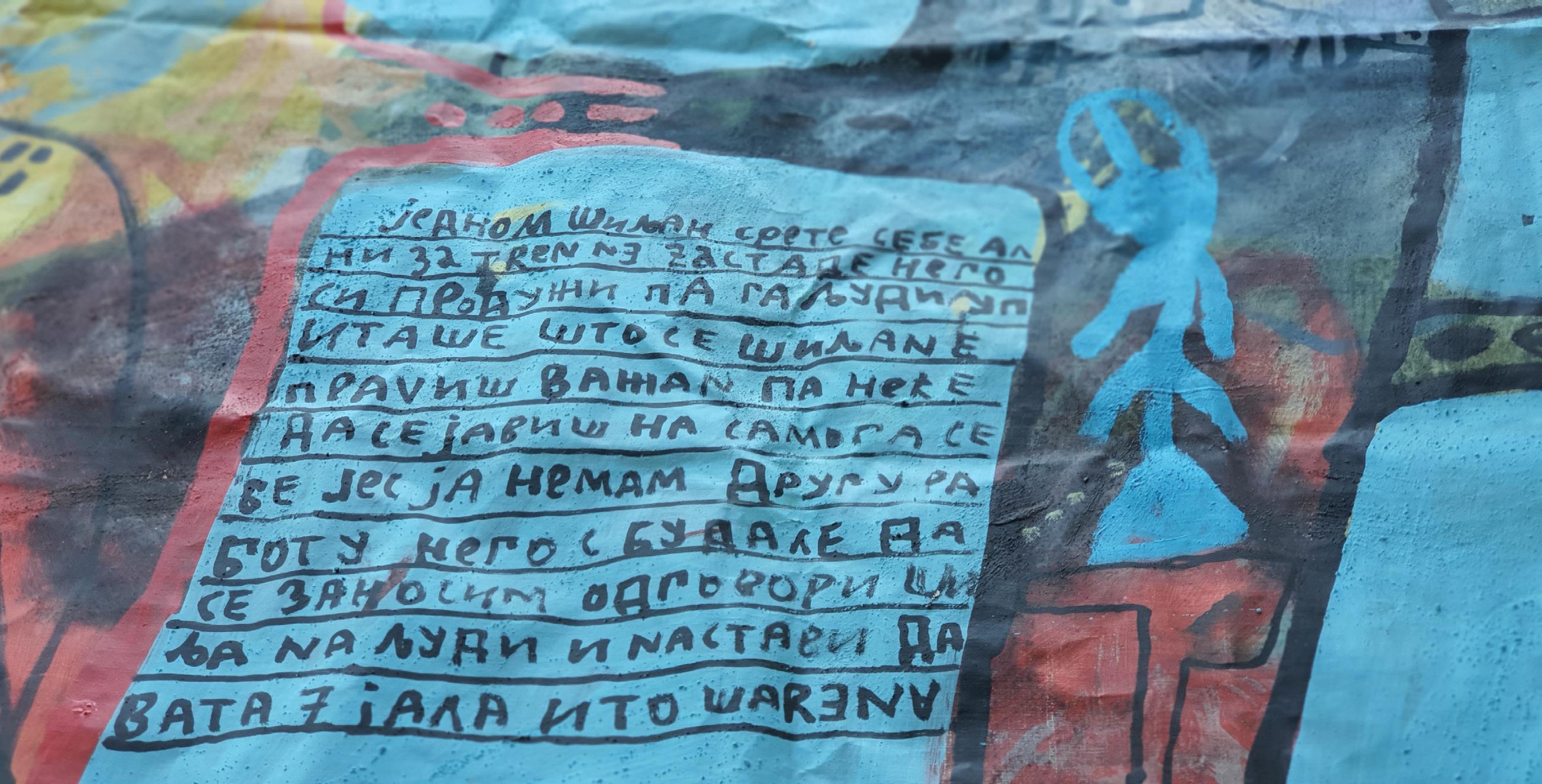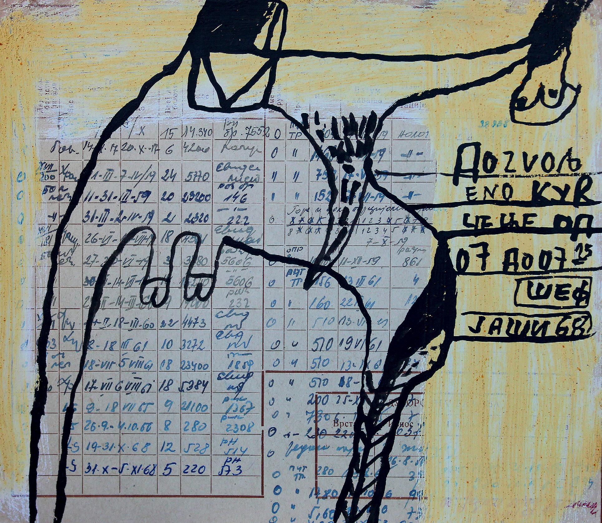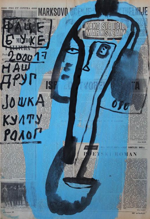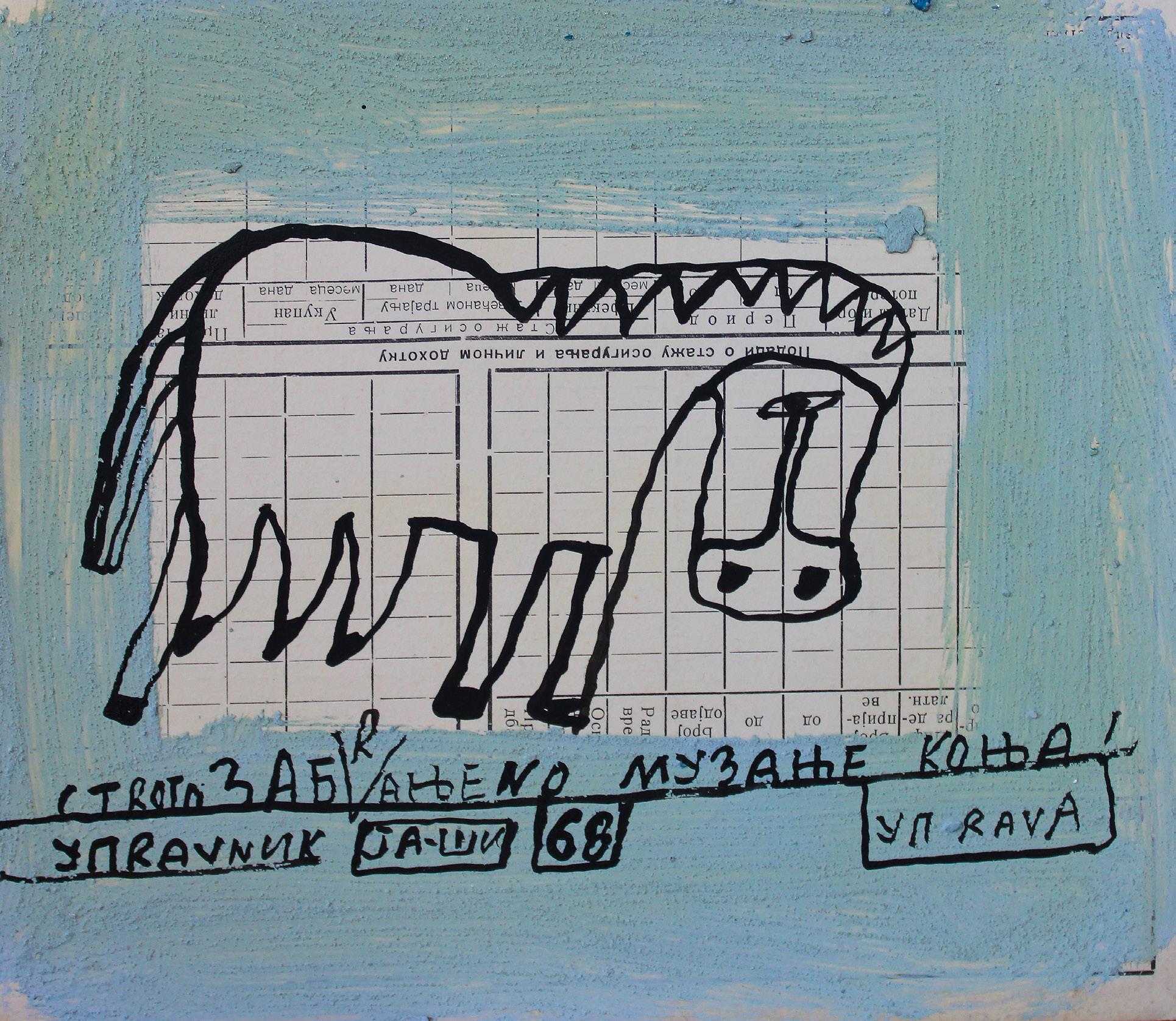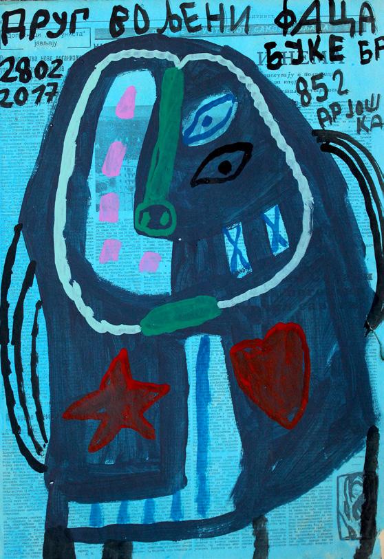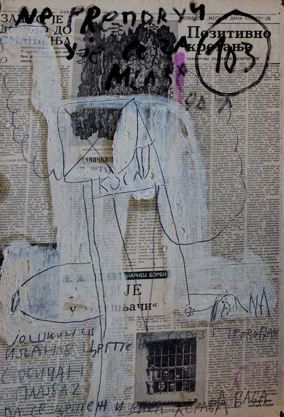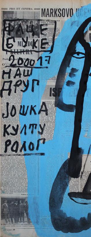 „Slikar je pronašo mene iako sam ja ko svako pametan teo da pobegnem al on mislim na Slikara čvrsto zgrabio pa ne pušta eve još me drži i još poveće steza što bi rekla pokojna baba Mileva a ne tetka Sinko od koje begaš kad te niki ne juri ovo s baba Milevini zapisi je koncept na temu savremene komunikacije kao pokojna baba Mileva mi šalje poruke od onaj svet za ovaj ovde svet a ja sam zapisničar i još malko nešto našvrljam. Vreme ko vreme oće da nas proguta i moj način da se iz te zamke izvučem je OZBILJNO ZEZANJE što je i ideja vodilja mog stvaranja stvaram kad mi se oće kad imam alal kad imam dovoljno radosti za stvaranje i tad vreme nije bitno može da bude 5 sekundi ili 33 dana“.