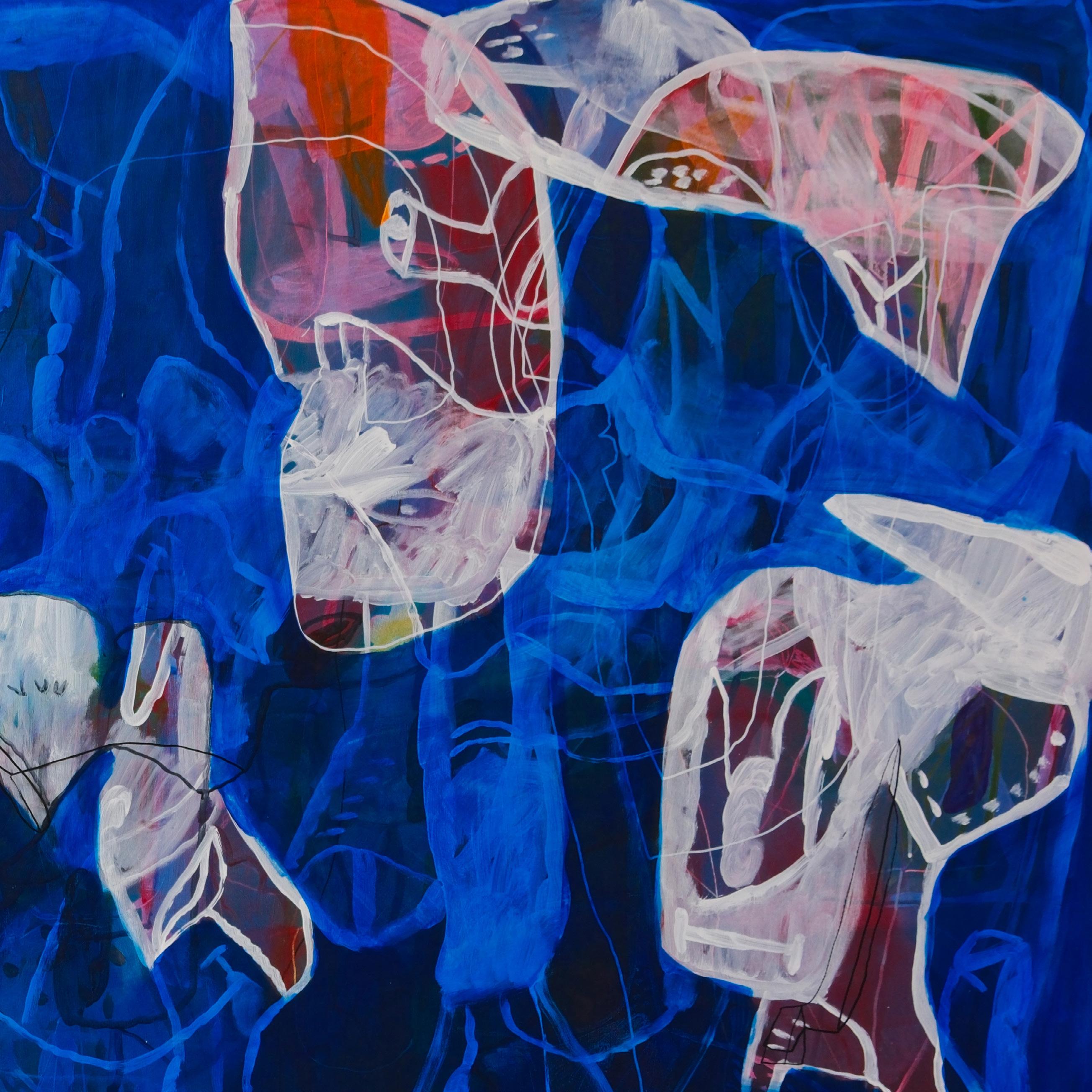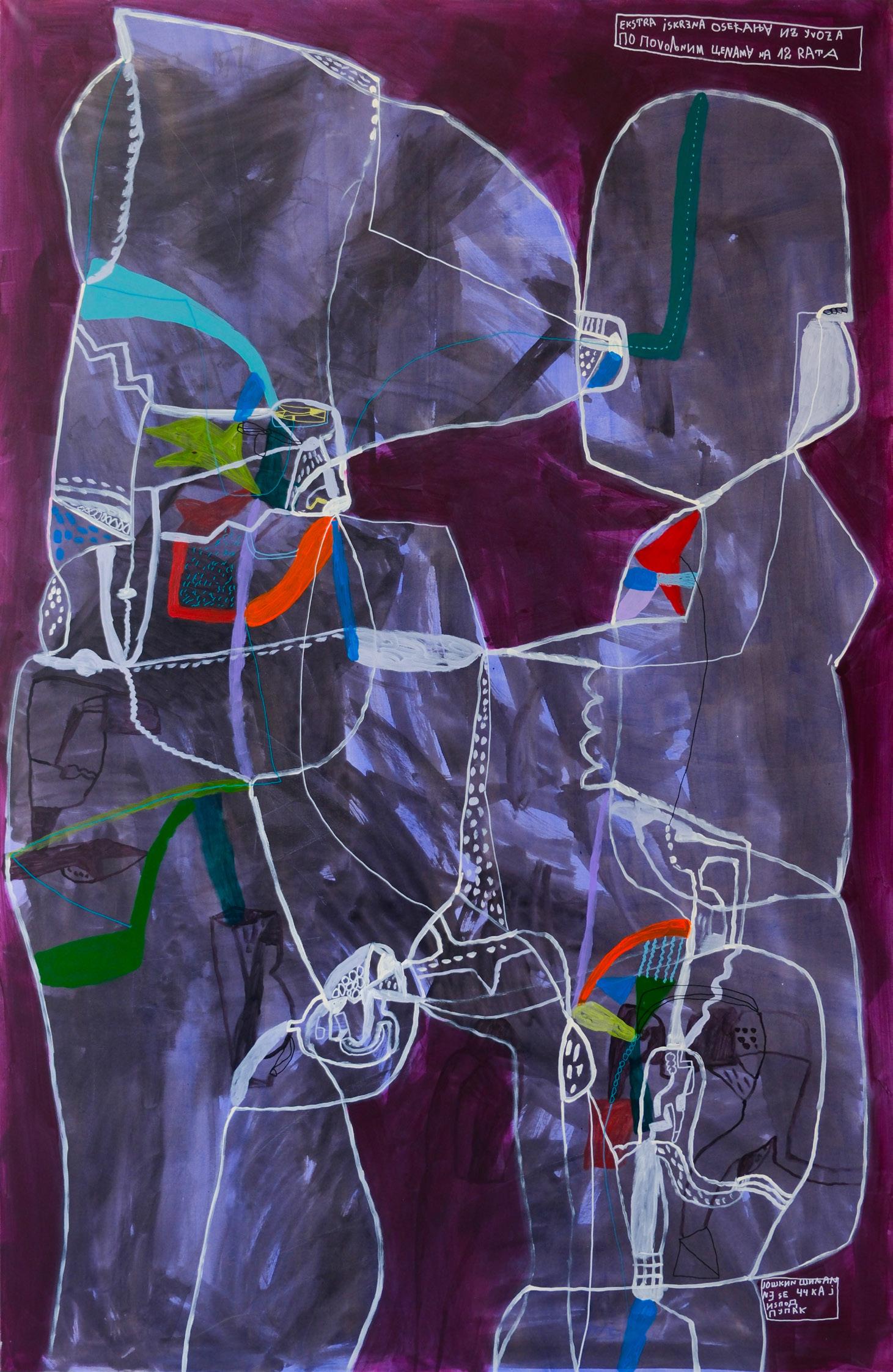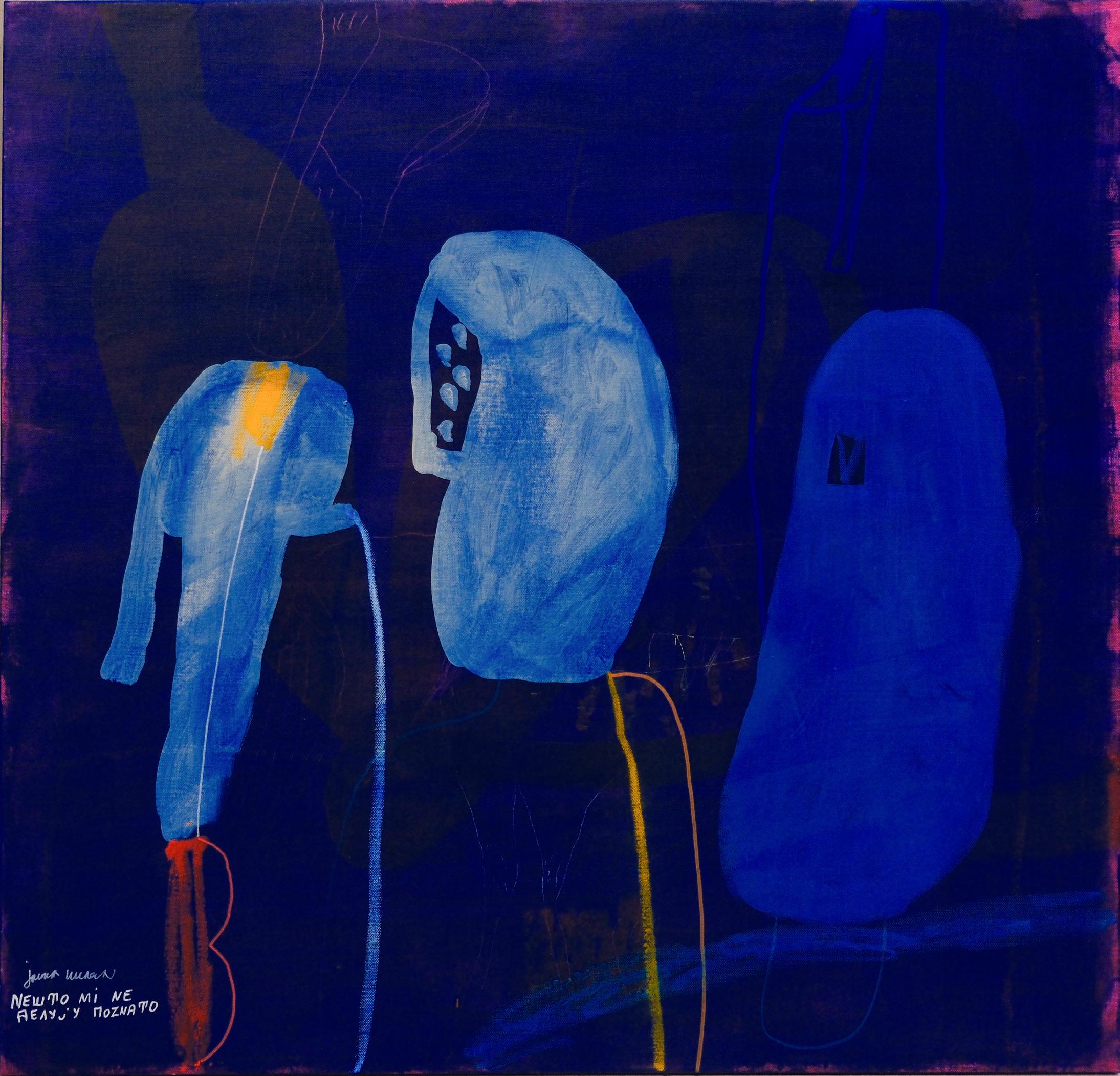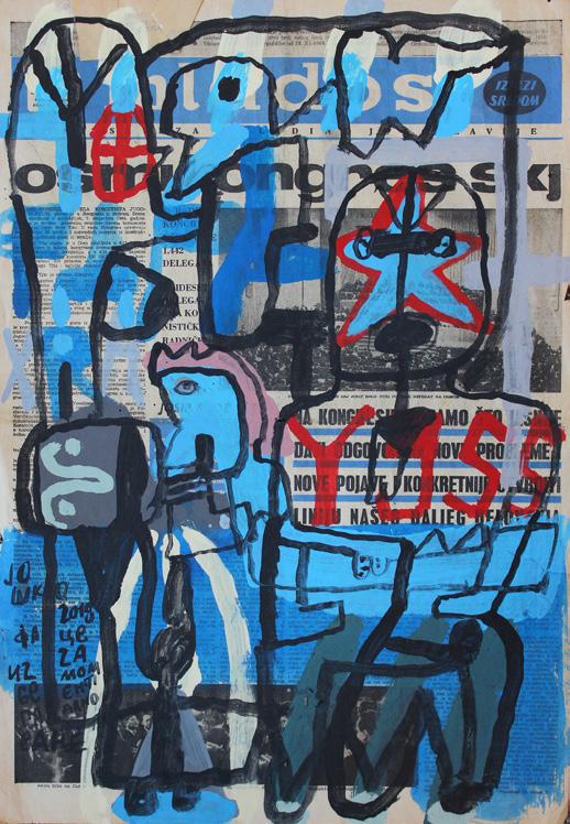 Nešto mi ne deluju poznato, 2025. Kombinovana tehnika na platnu, 95 x 99 cm
