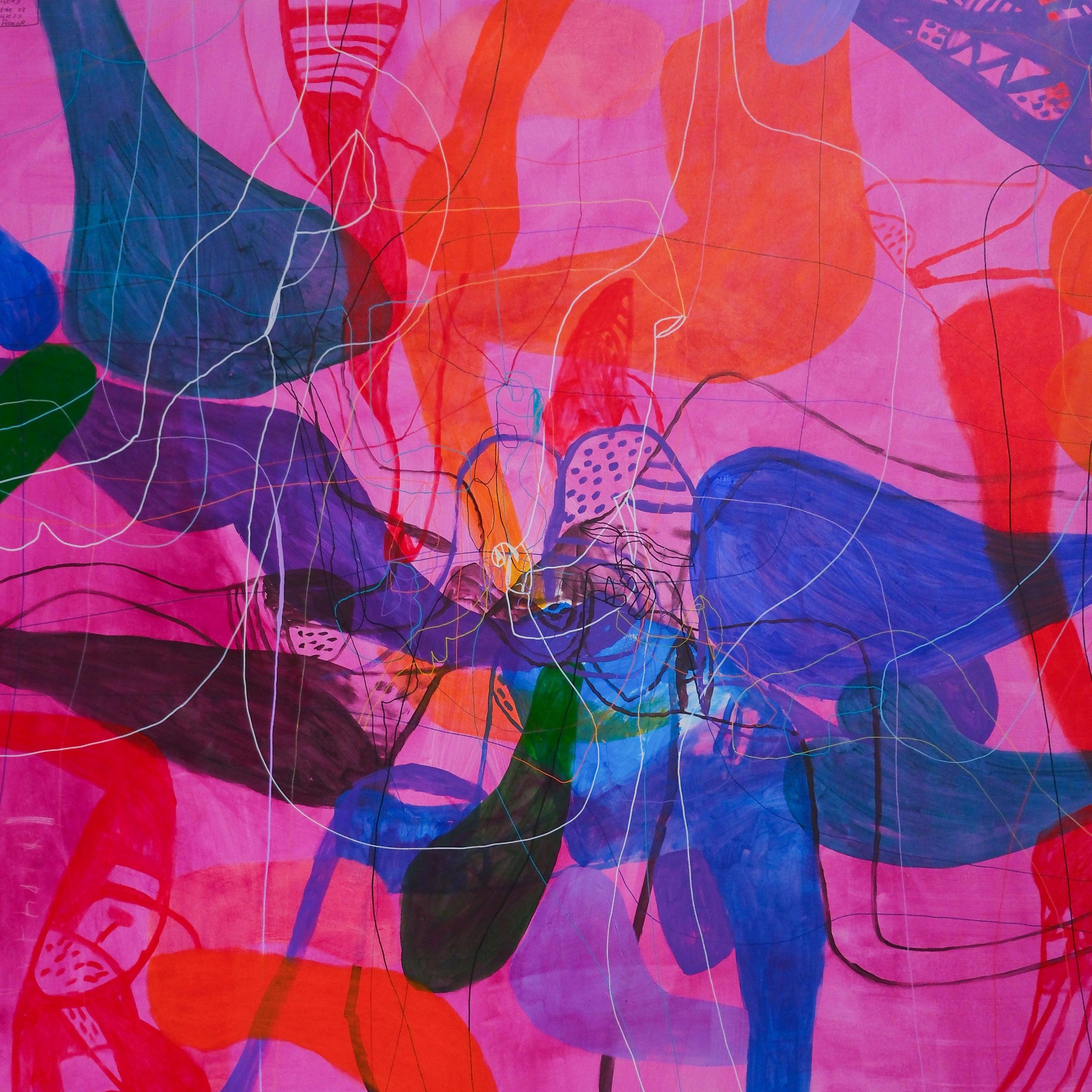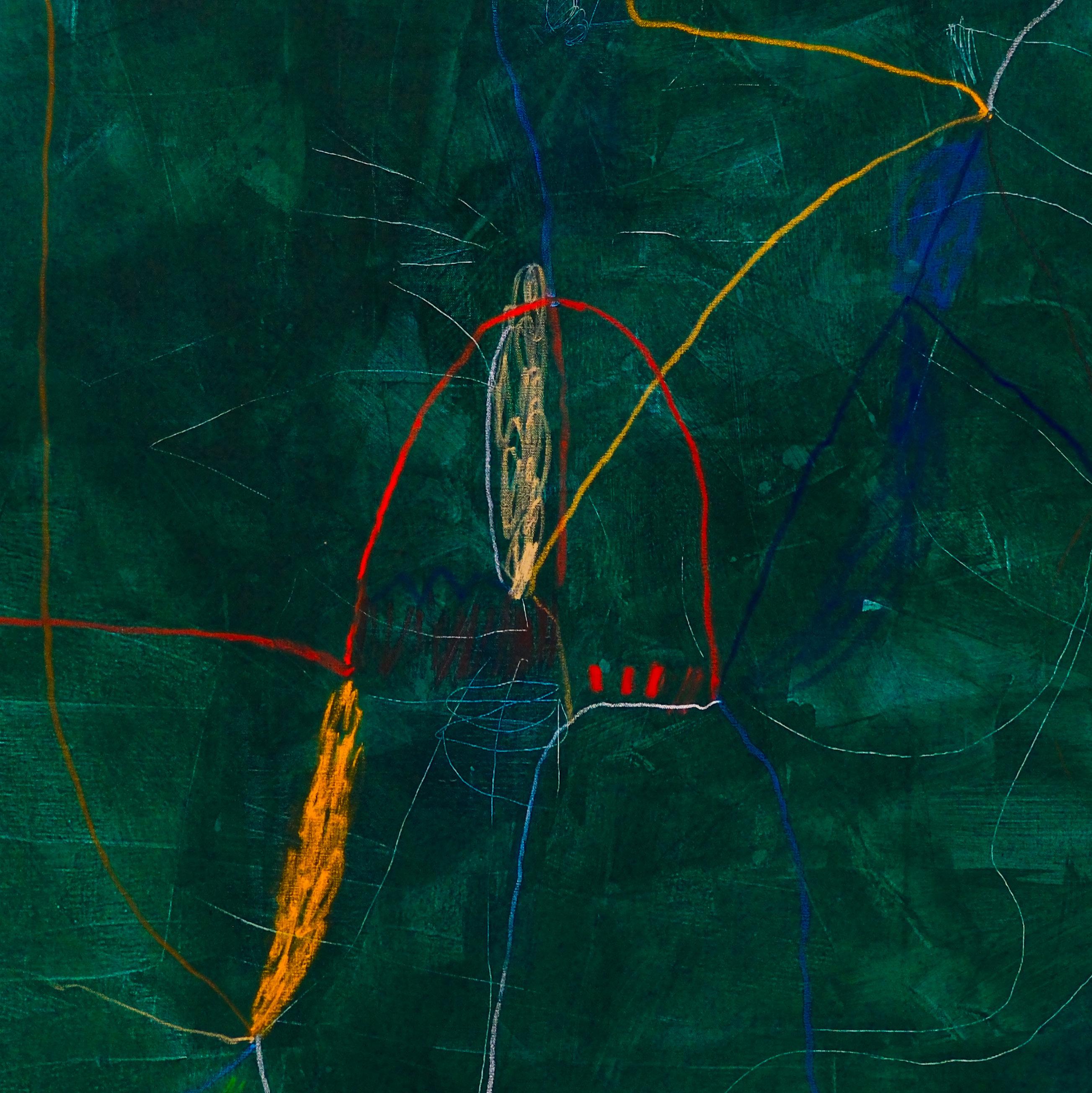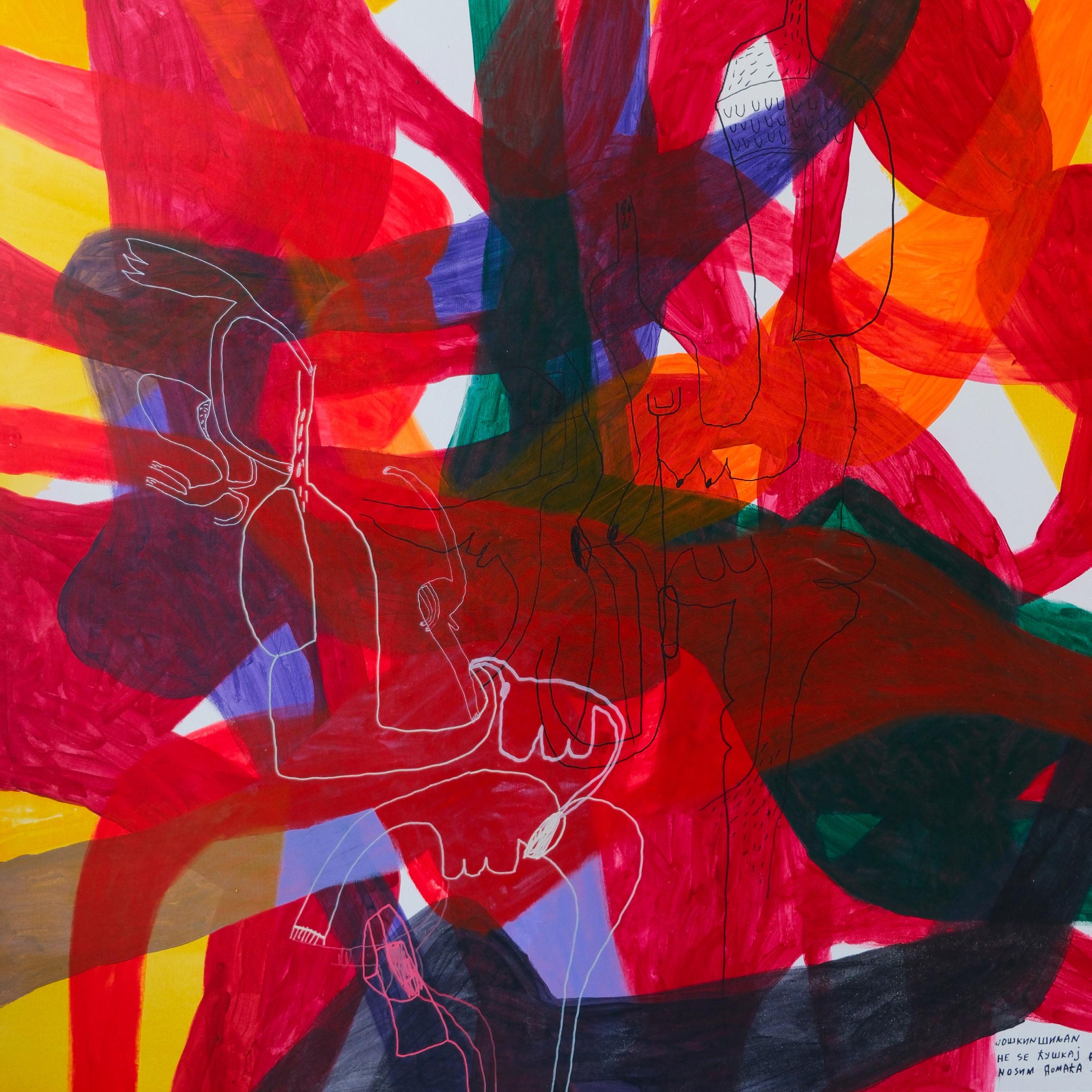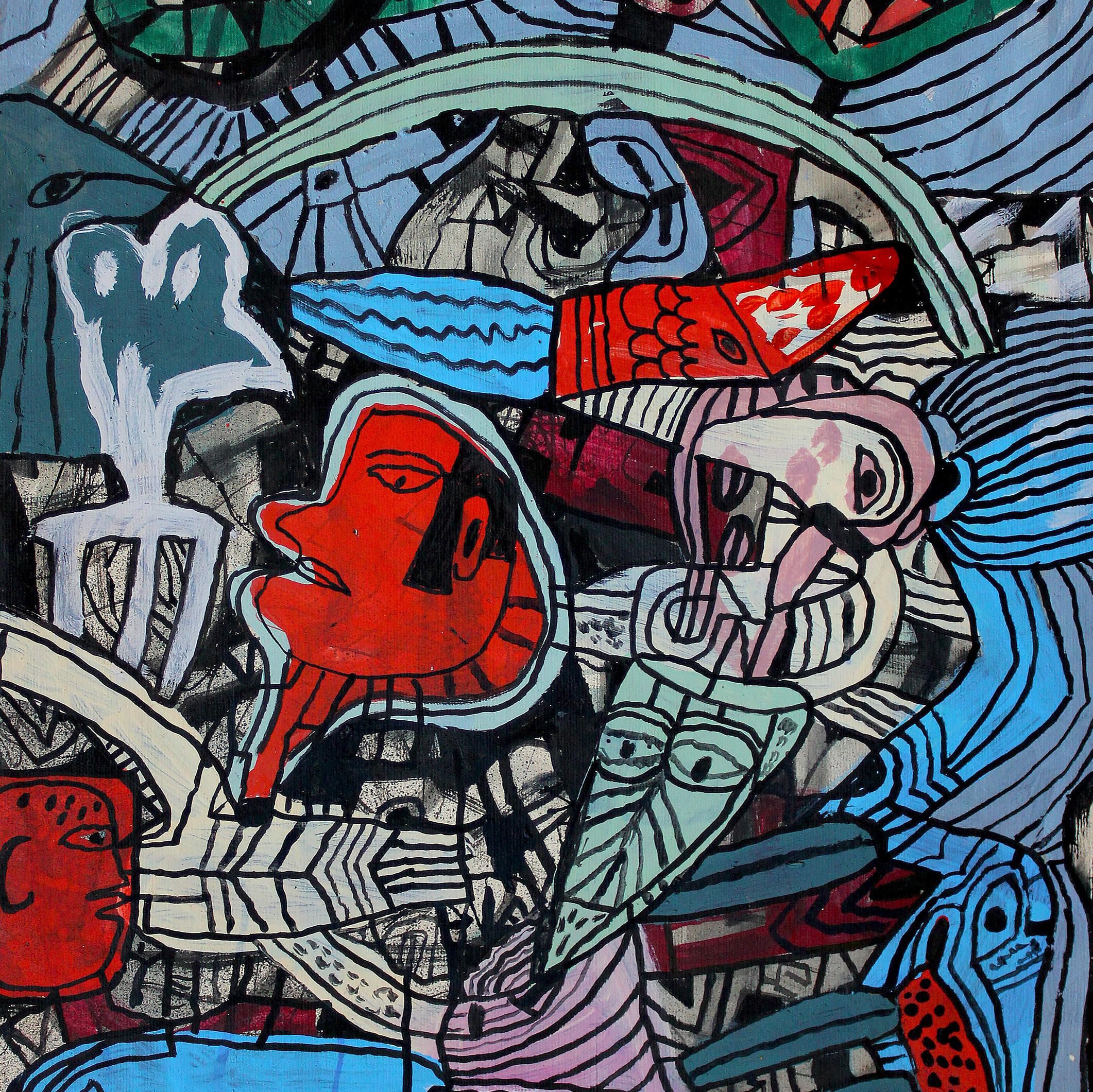 Detalj slike – Svi putevi vode u duboku šumu, 2025. Kombinovana tehnika na platnu, 194 x 194 cm