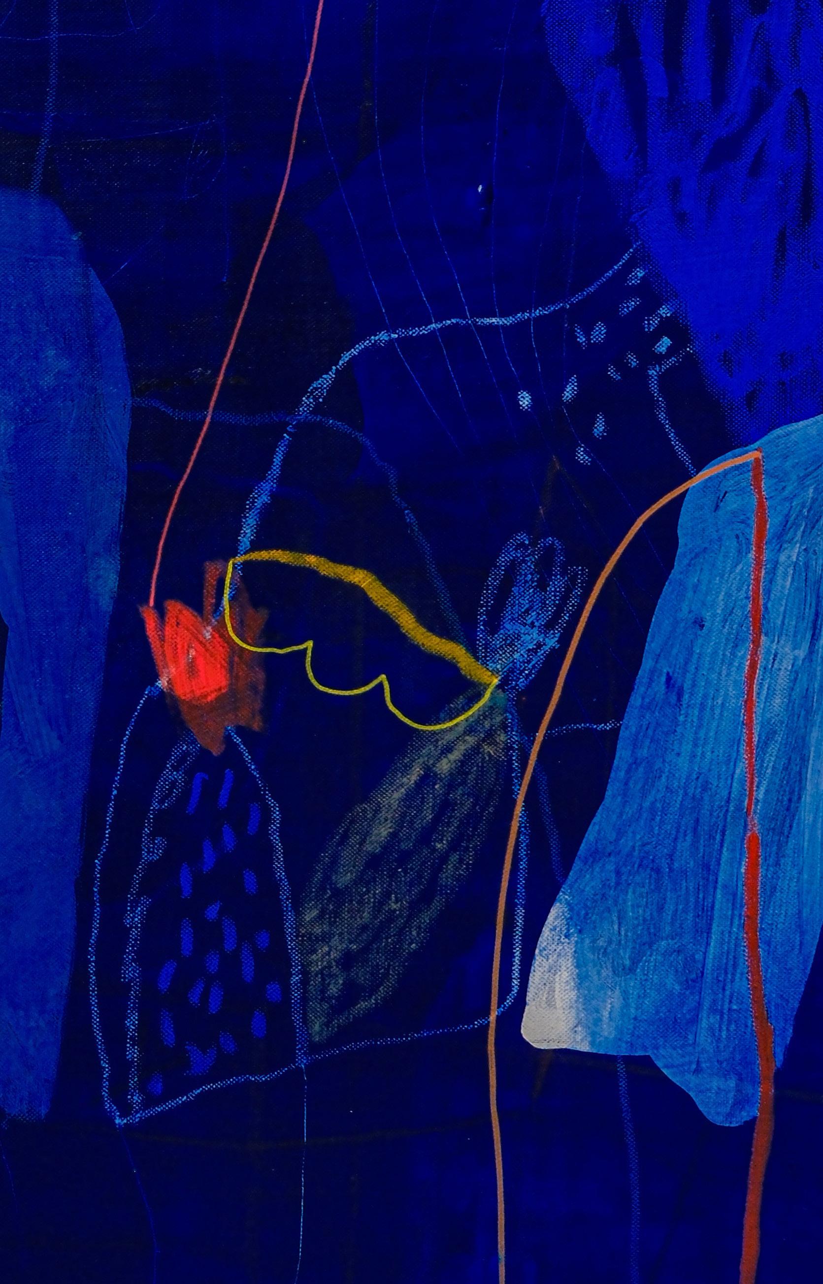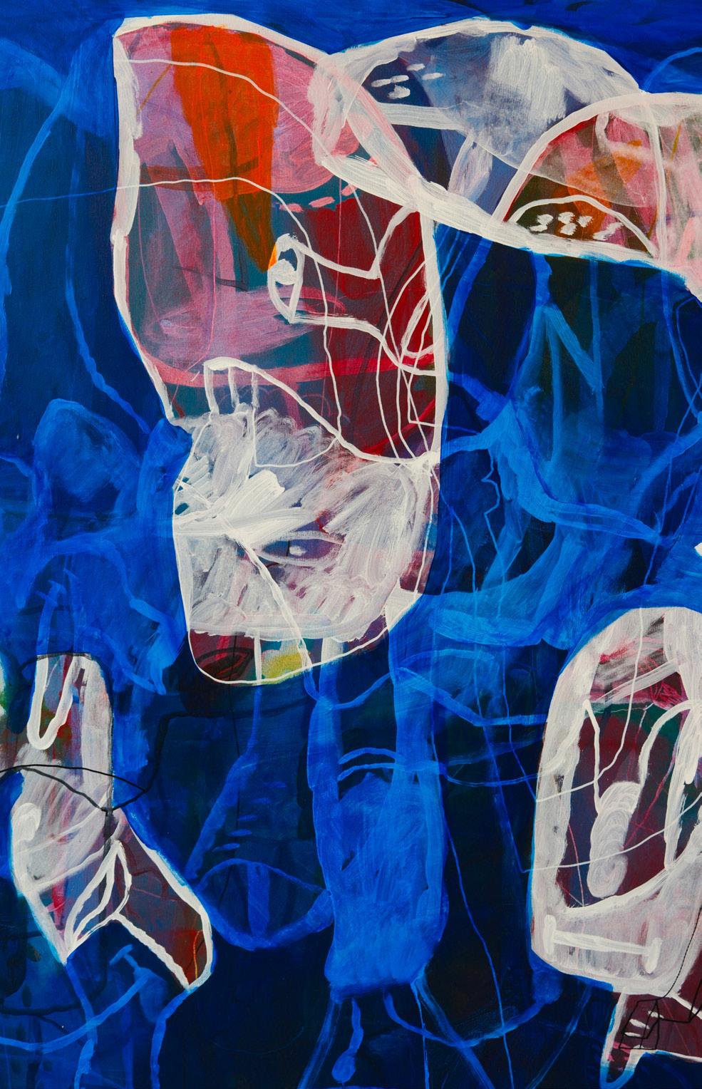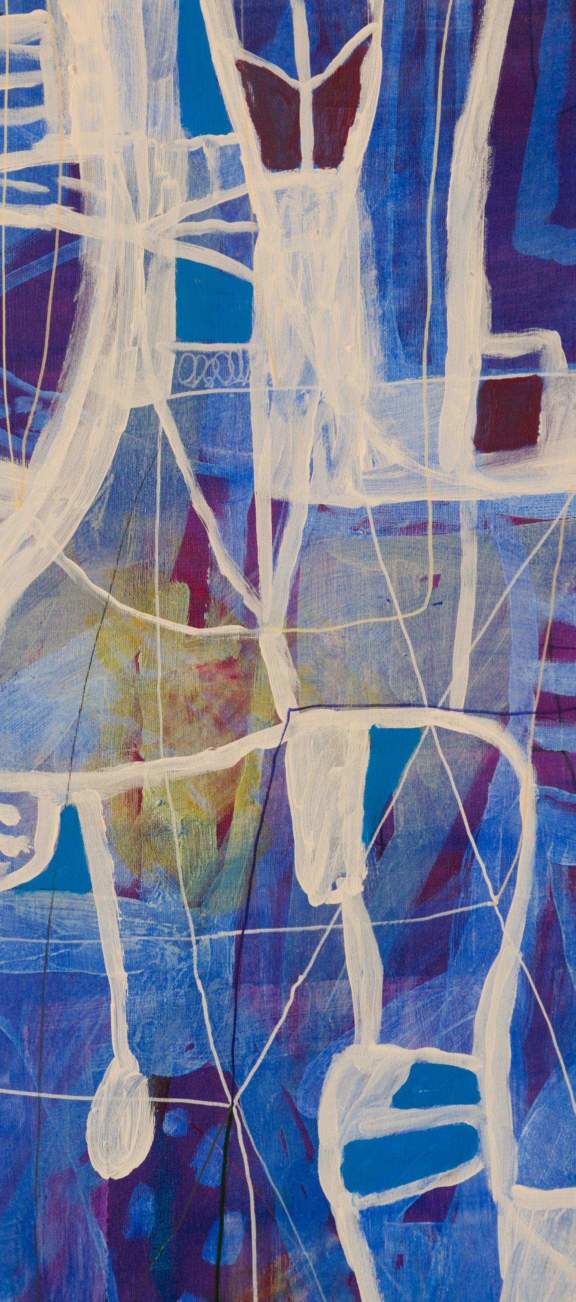 Detalj slike – Svi putevi vode u duboku šumu, 2025. Kombinovana tehnika na platnu, 194 x 194 cm