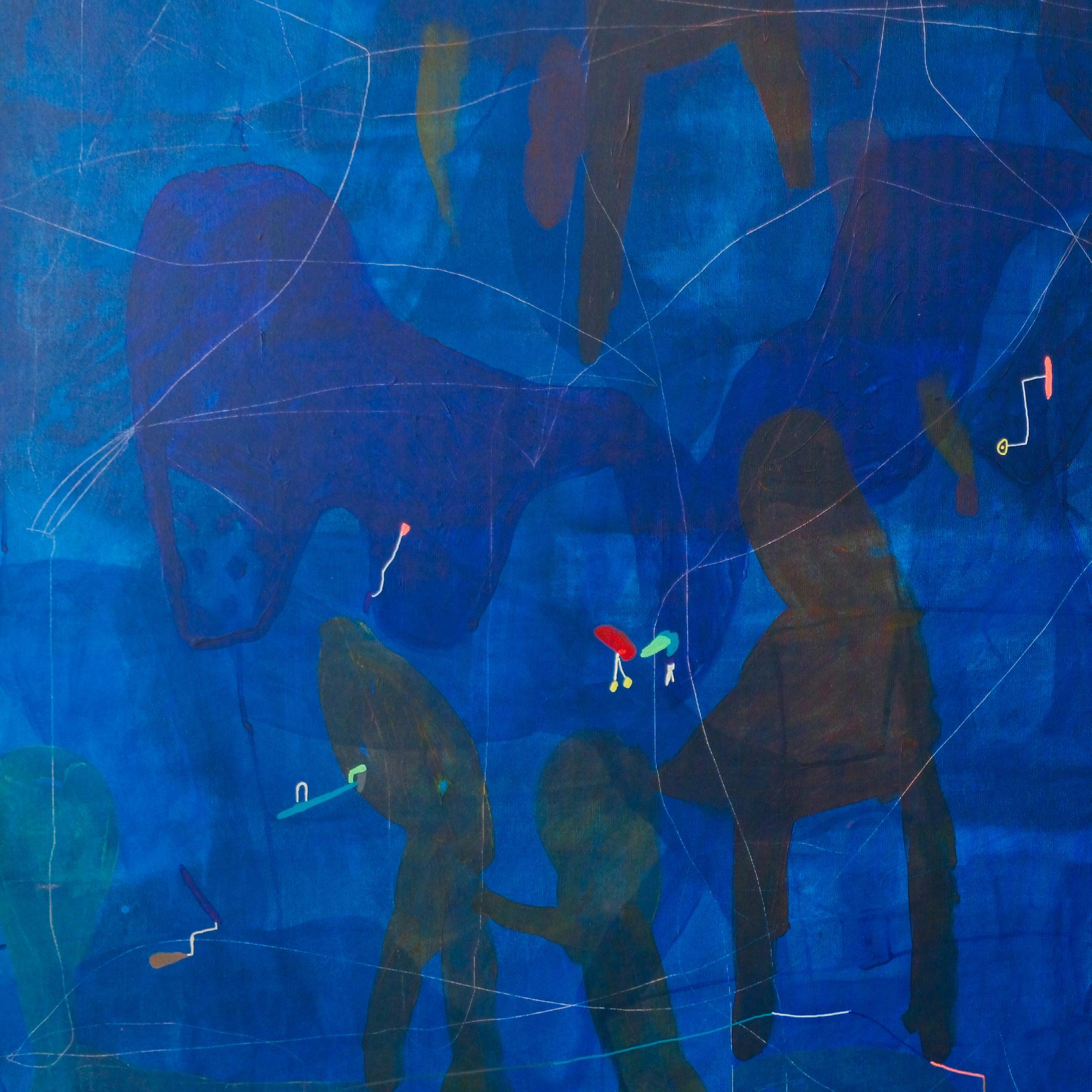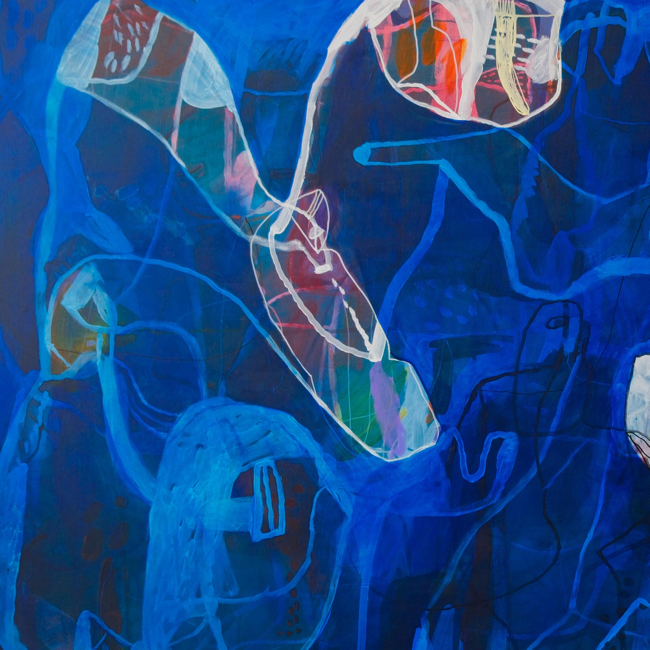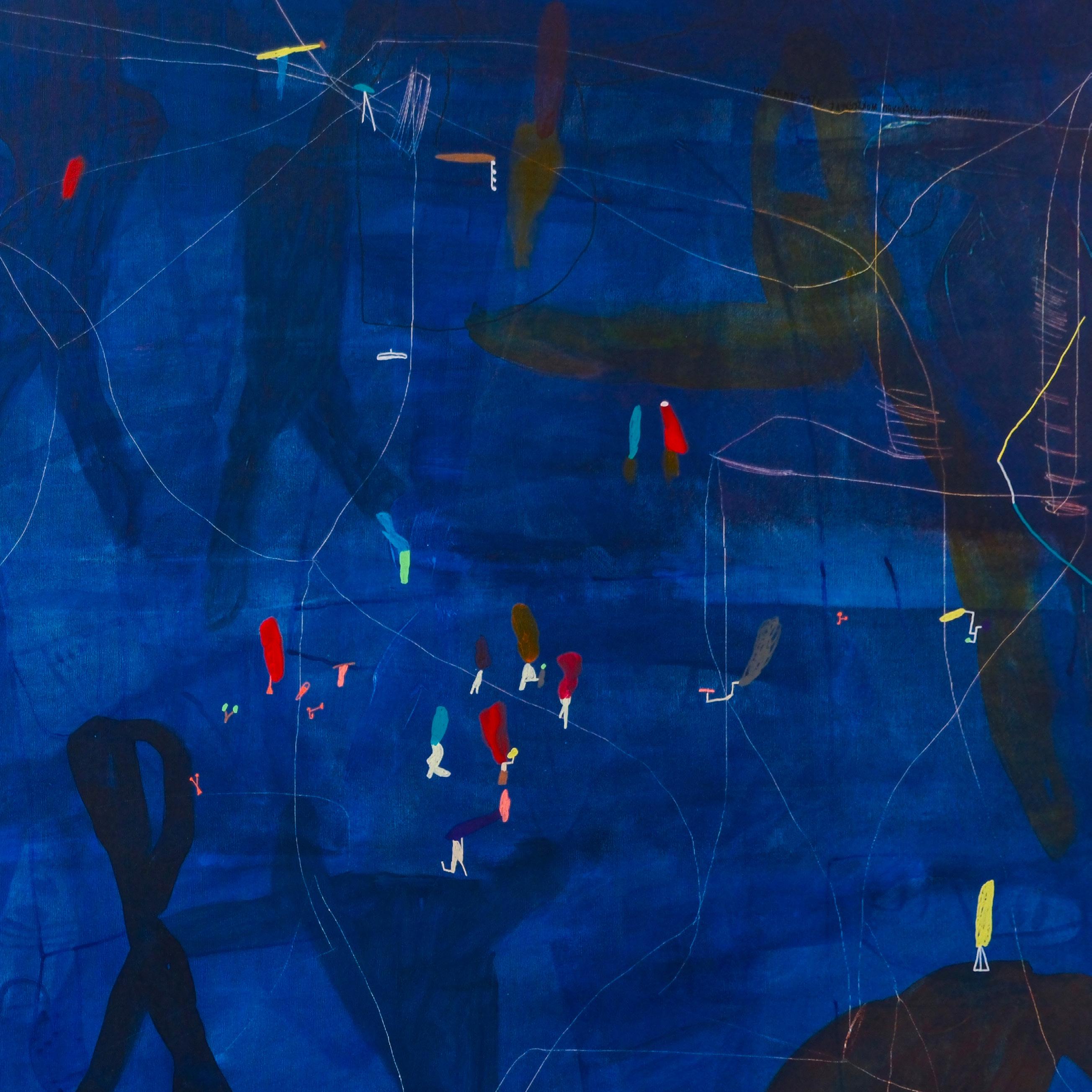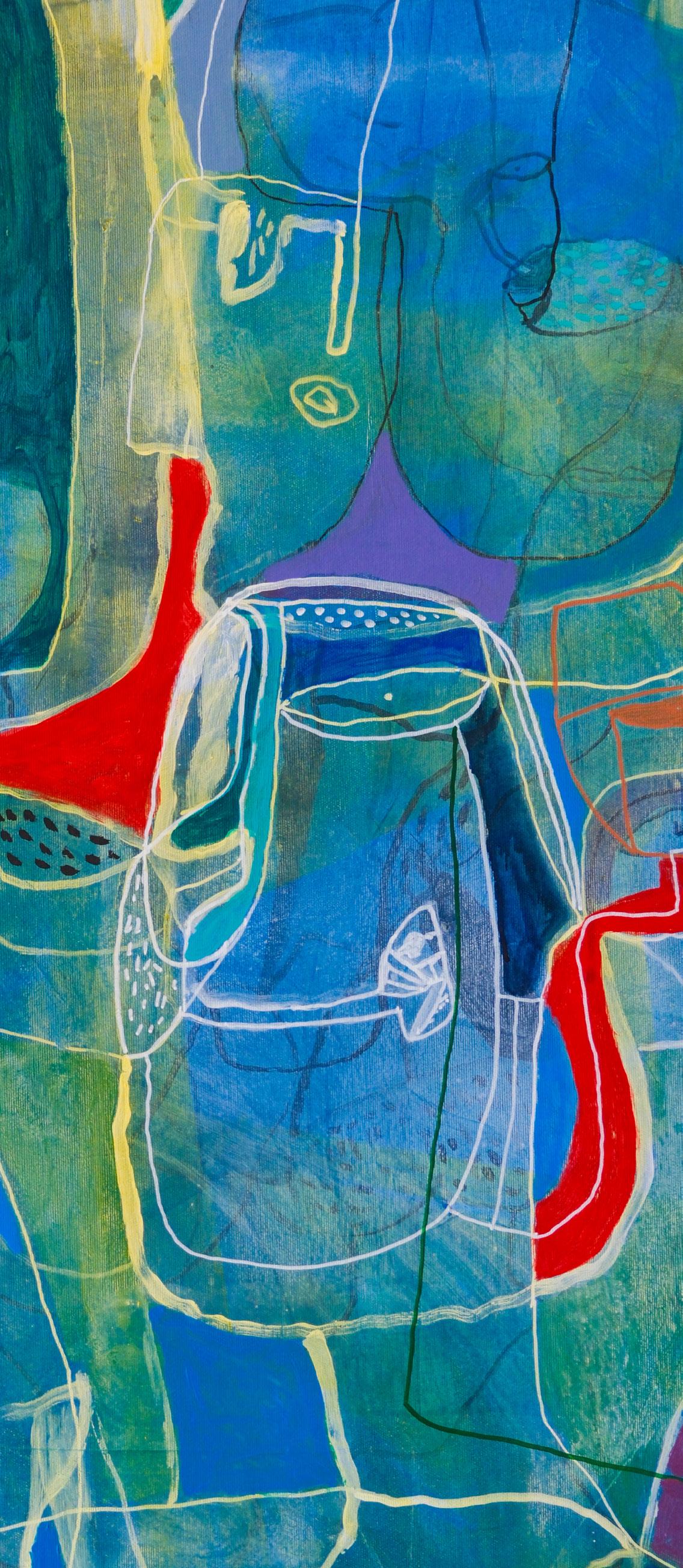Detalj slike – Svi putevi vode u duboku šumu, 2025. Kombinovana tehnika na platnu, 194 x 194 cm