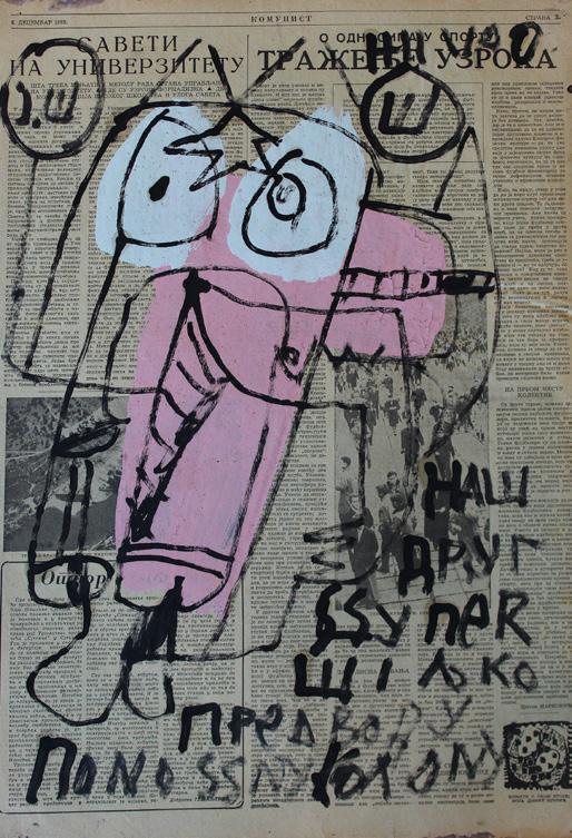 Ovakav stvaralački diskurs nije rezultat racionalnog promišljanja, već procesa automatskog slikanja i zapisivanja, koje oscilira na granici svesnog i nesvesnog. Njegovim opusom dominira intuicija, automatizam i vizuelna i jezička kakofonija što, paradoksalno, stvara harmoničnu i prepoznatljivu celinu. Ovakva umetnost je smela i odvažna u svojoj neopterećenosti sadržajem – haotična bujica koja neprestano nadire, ne birajući precizno šta će u svom vrtlogu poneti i složiti u jedinstvenu sliku.