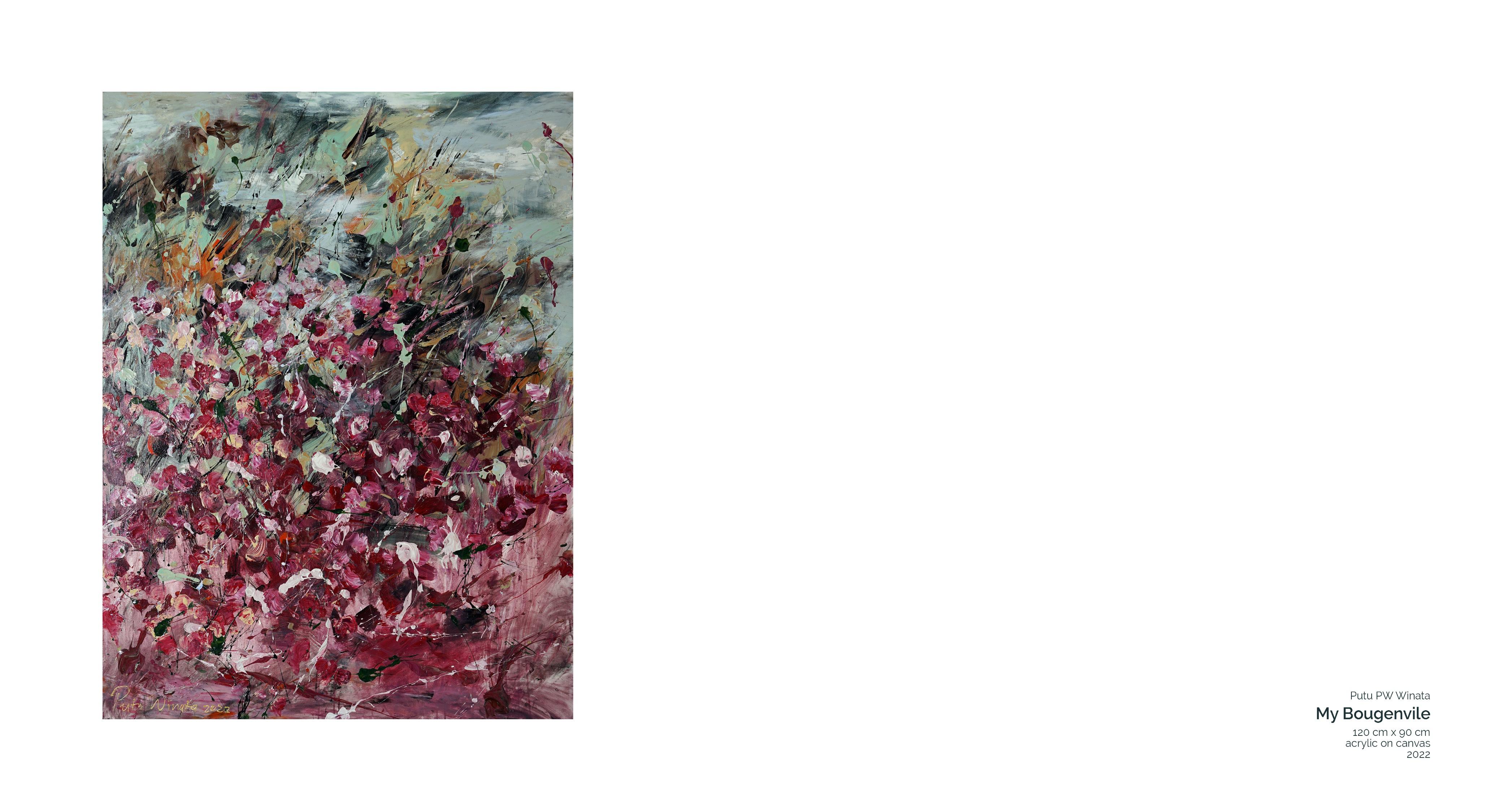 "Imagine Asia" is a solo paintings exhibition by Putu PW Winata (nominator for UOB Bank Art Awards of the Year 2021) at The Ritz~Carlton, Bali, Indonesia. Displaying 16 latest special artworks that expresses a creative search for the meaning of Asia as a whole. The landscapes and flora on his canvases not only represent nature, but also symbolize the Asian spirit and the Asia that Putu Winata sees and explores, such as diversity, religiosity close to nature, and freedom in harmony. Exhibition period 21 October - 30 November 2022.