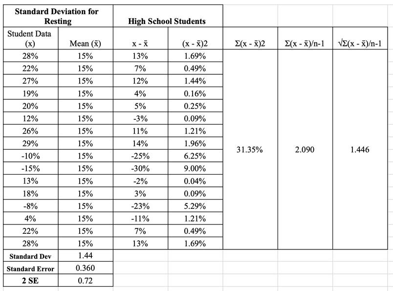 A Table To Show The Standard Deviation and Standard Error For High School Students