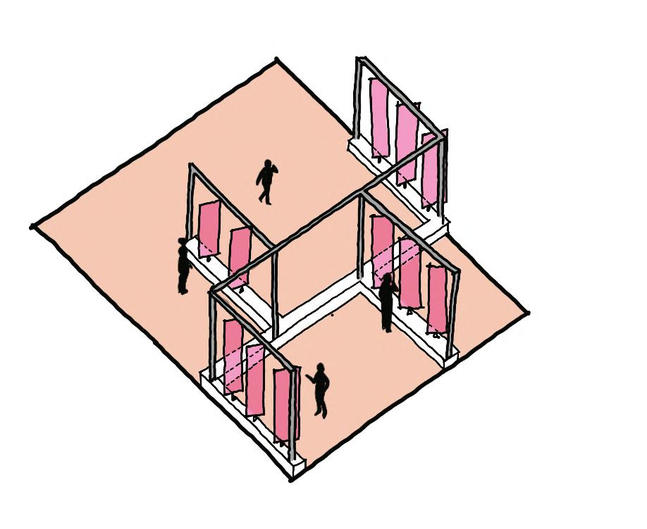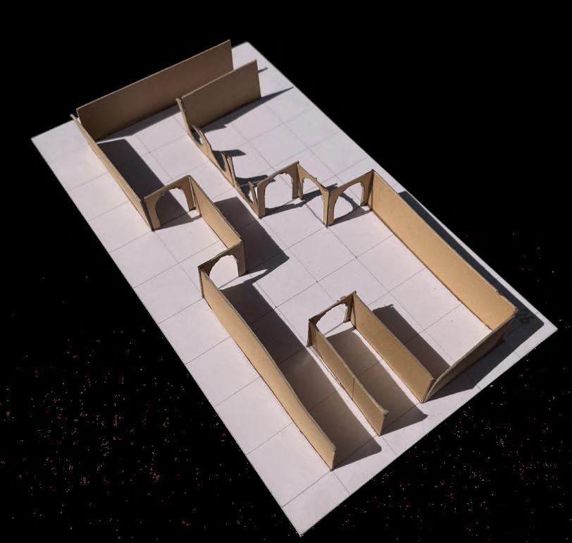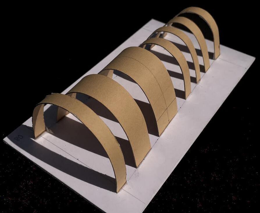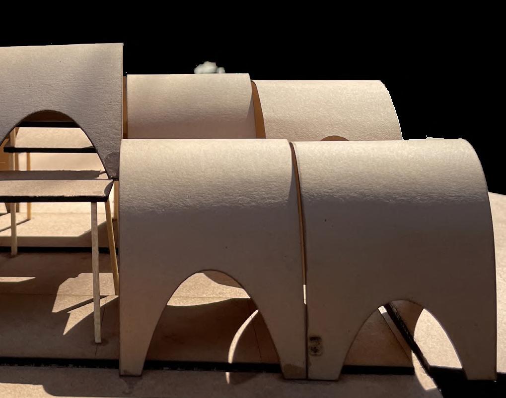 This second iteration was made keeping in the material- Brick. This material is locally available and allows the use of local population to help build the weavers complex. The weaving machines- power loom and hand loom- were at the basis of this iteration.
