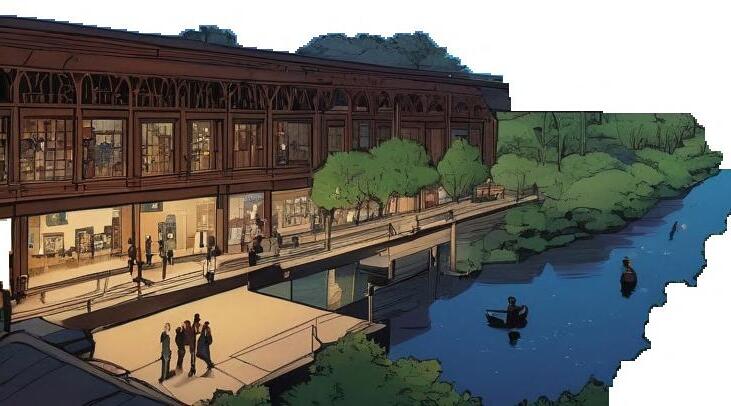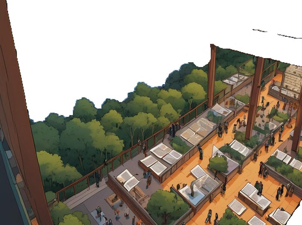 The exhibit’s intensity necessitates reflective transition spaces, blending indoor and outdoor areas for contemplation. To minimize disruption to the