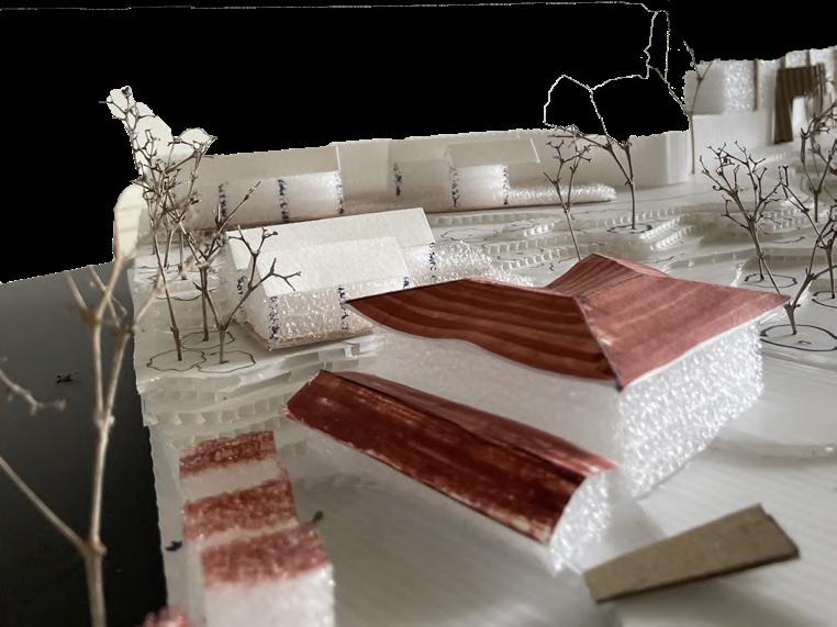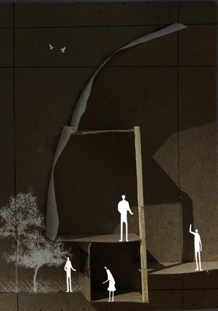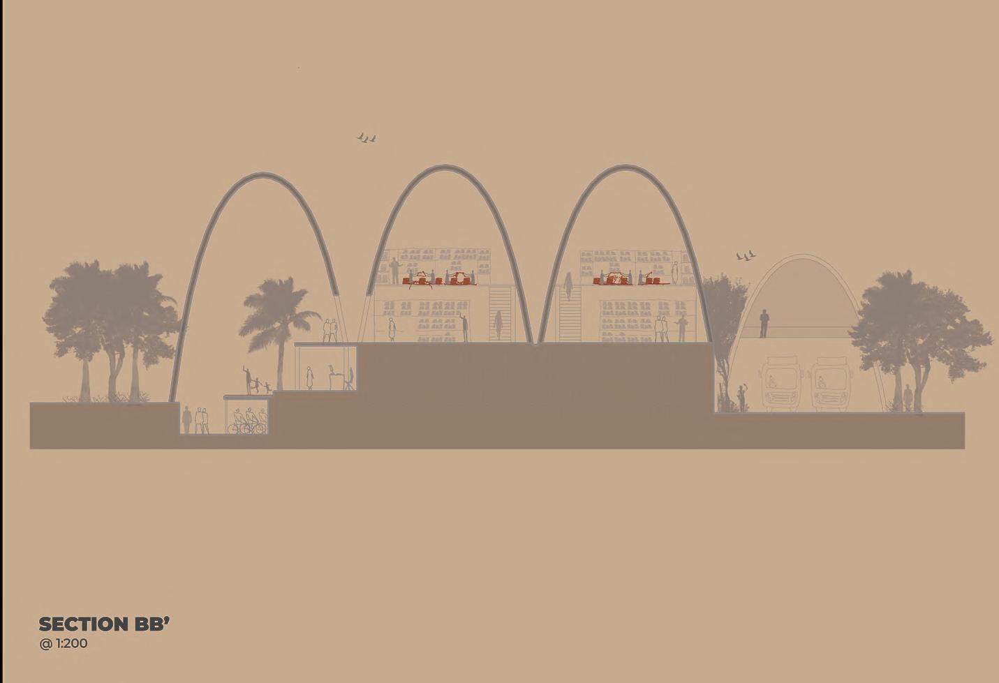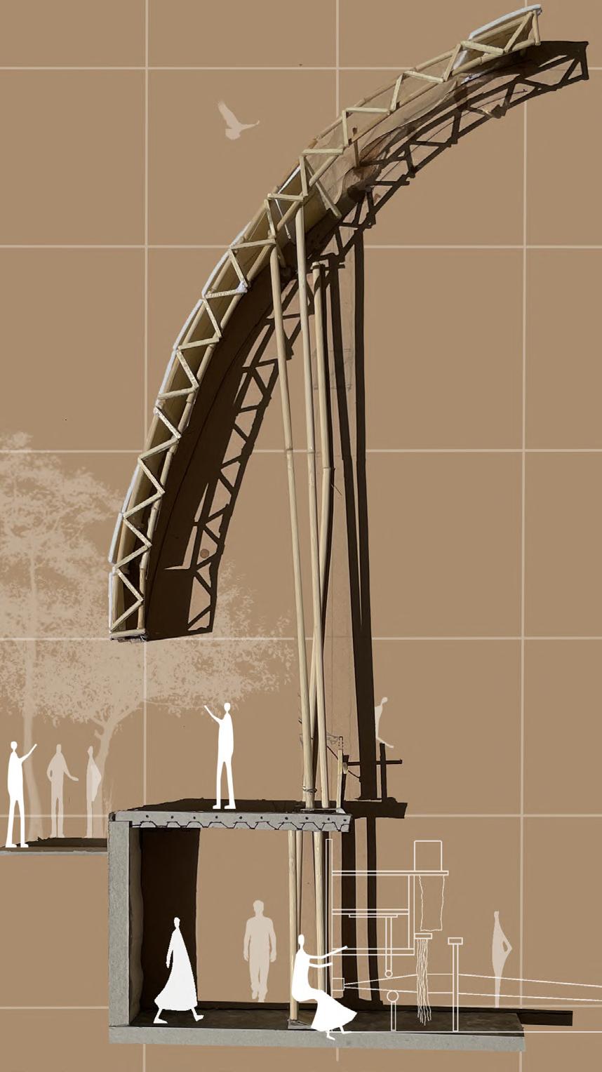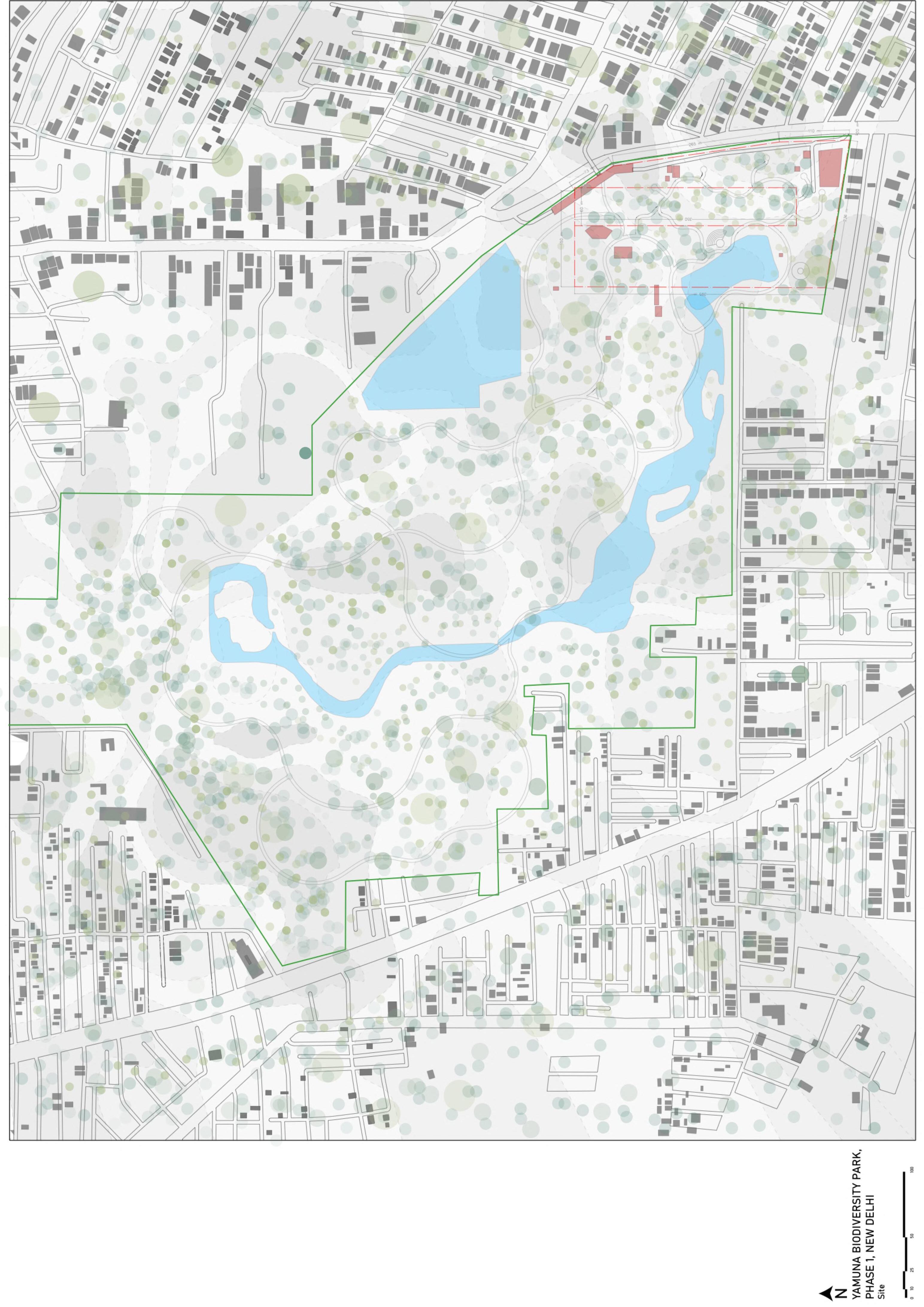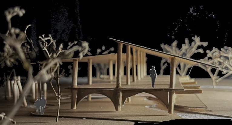 park’s fauna, structures are elevated, offering enhanced views of the park and Delhi. This design captures the city’s crowded surroundings while providing a continuous, interactive experience across multiple levels.
