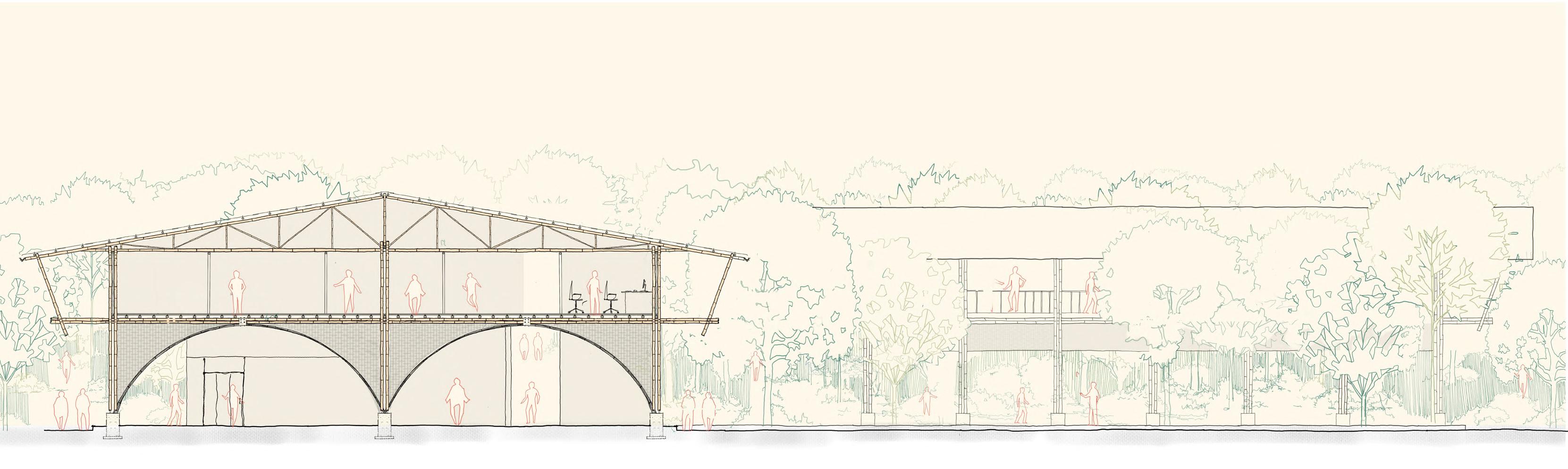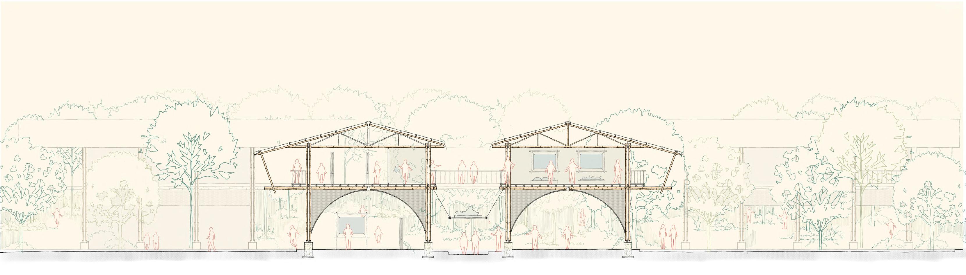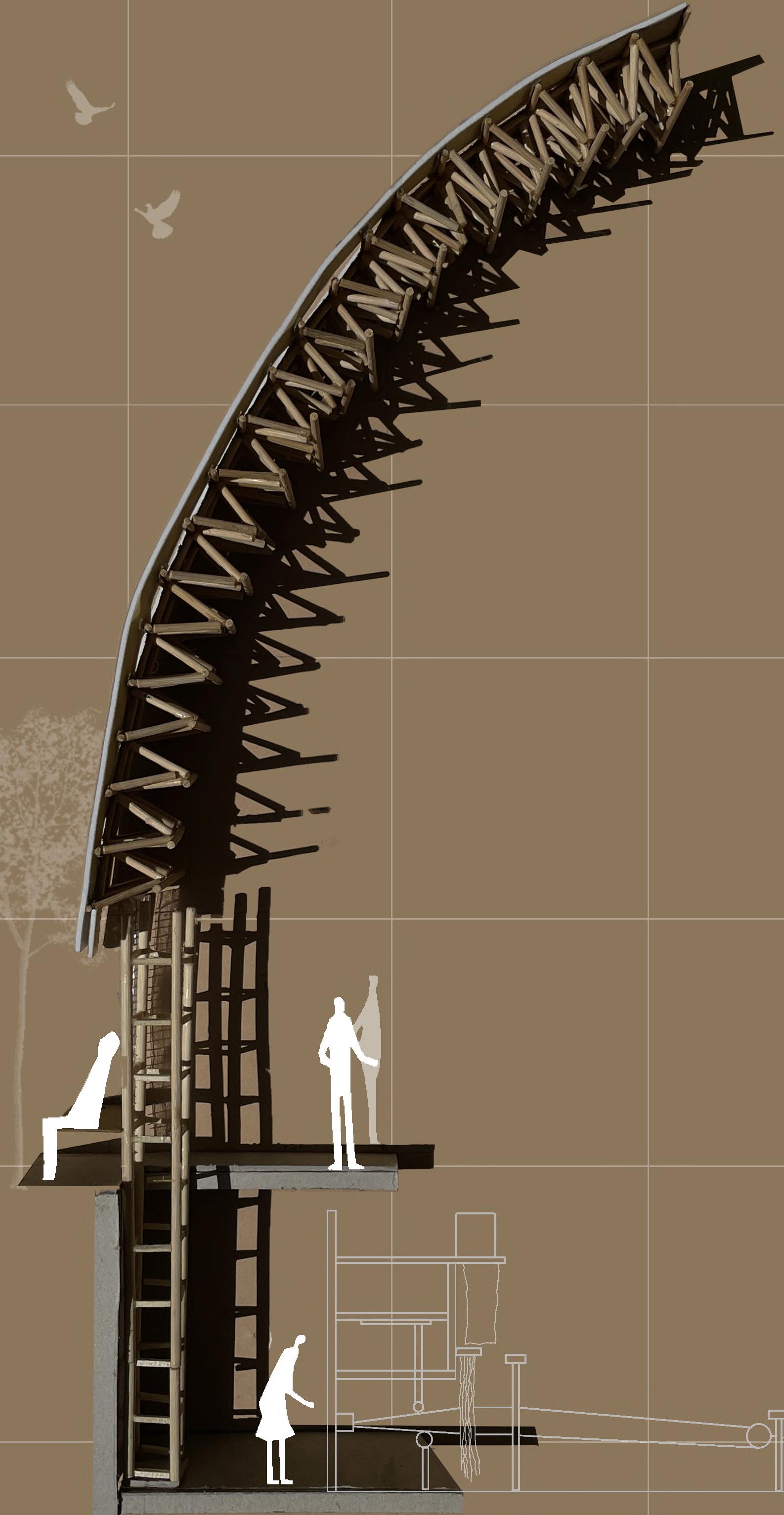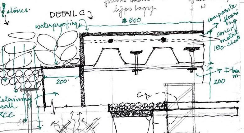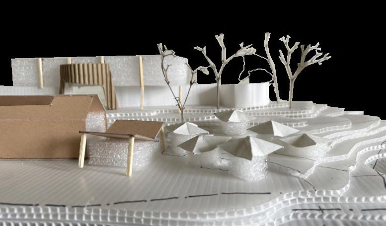 park’s fauna, structures are elevated, offering enhanced views of the park and Delhi. This design captures the city’s crowded surroundings while providing a continuous, interactive experience across multiple levels.