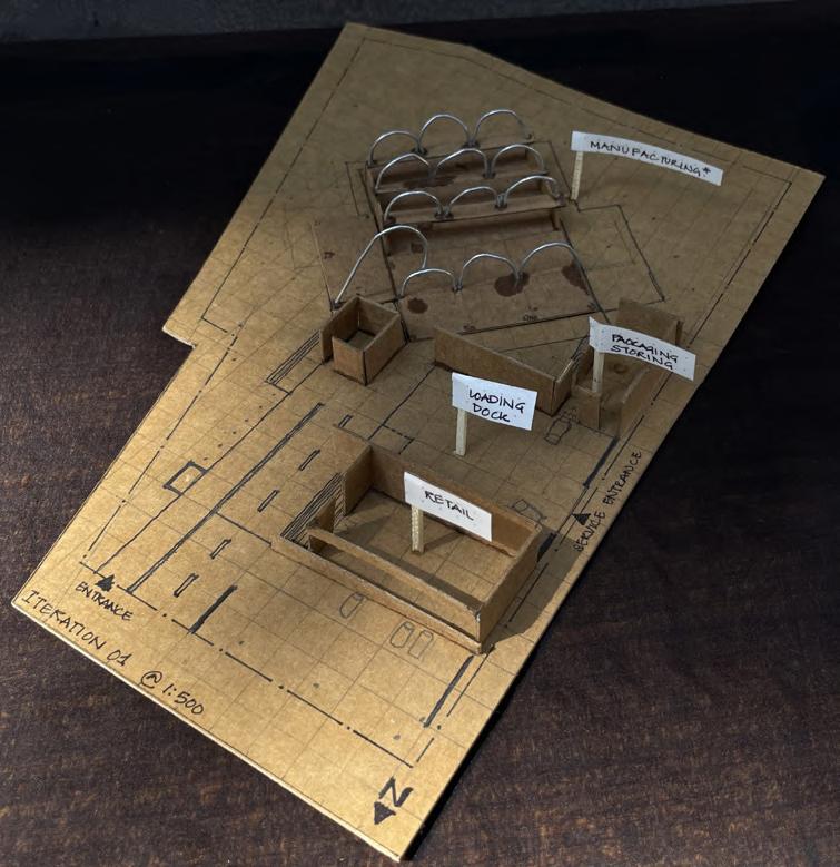 The intents behind this iteration was to create a modular space that ensures the functioning of the industry even before the project was completely built. Alternatively, the project could be built in phases as per the profits incurred and/or to increase production.