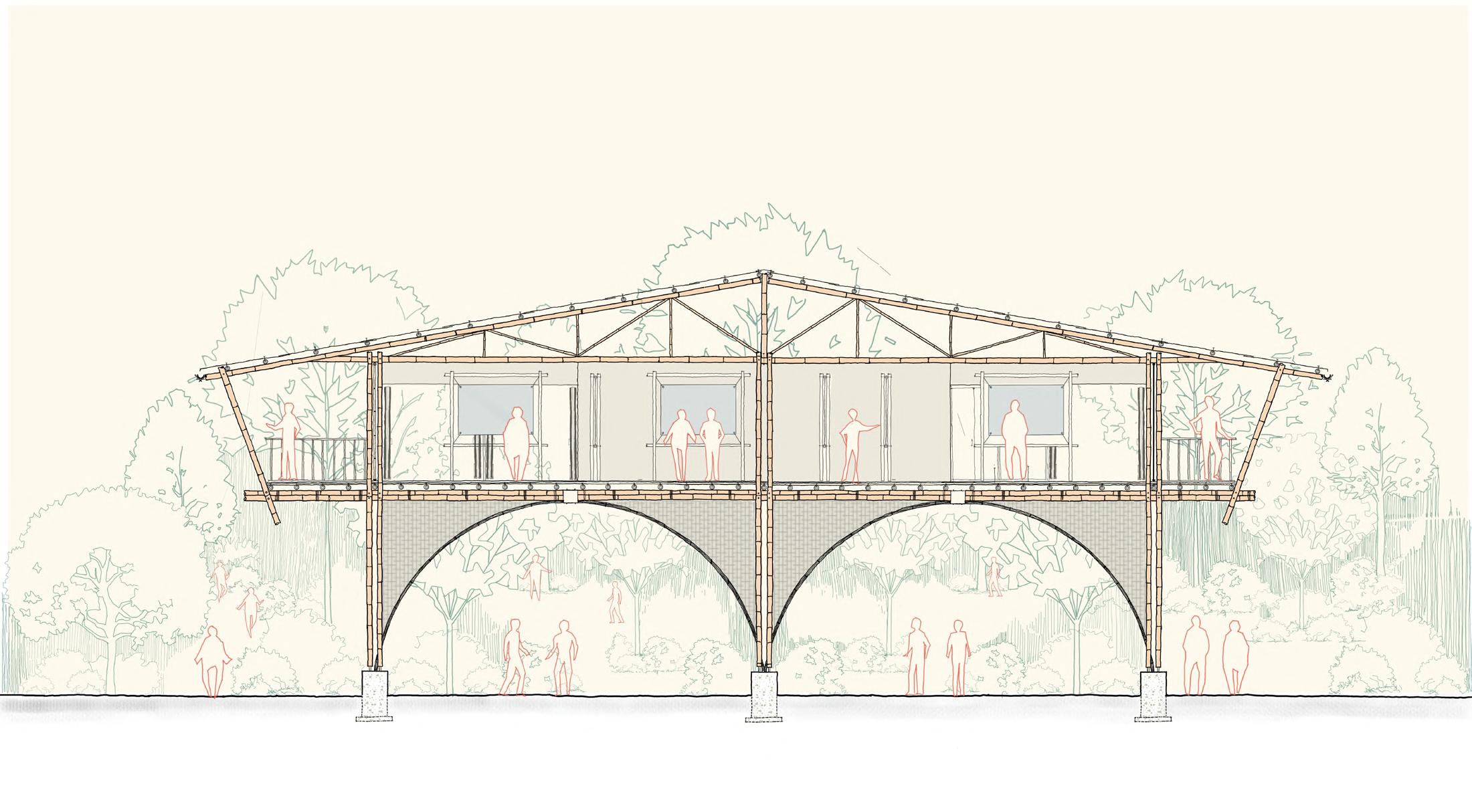 One of the main ideas of the design was to keep the ground as free as possible. This helped reduce the intervention from hindering the natural paths taken by wild animals living in the park.