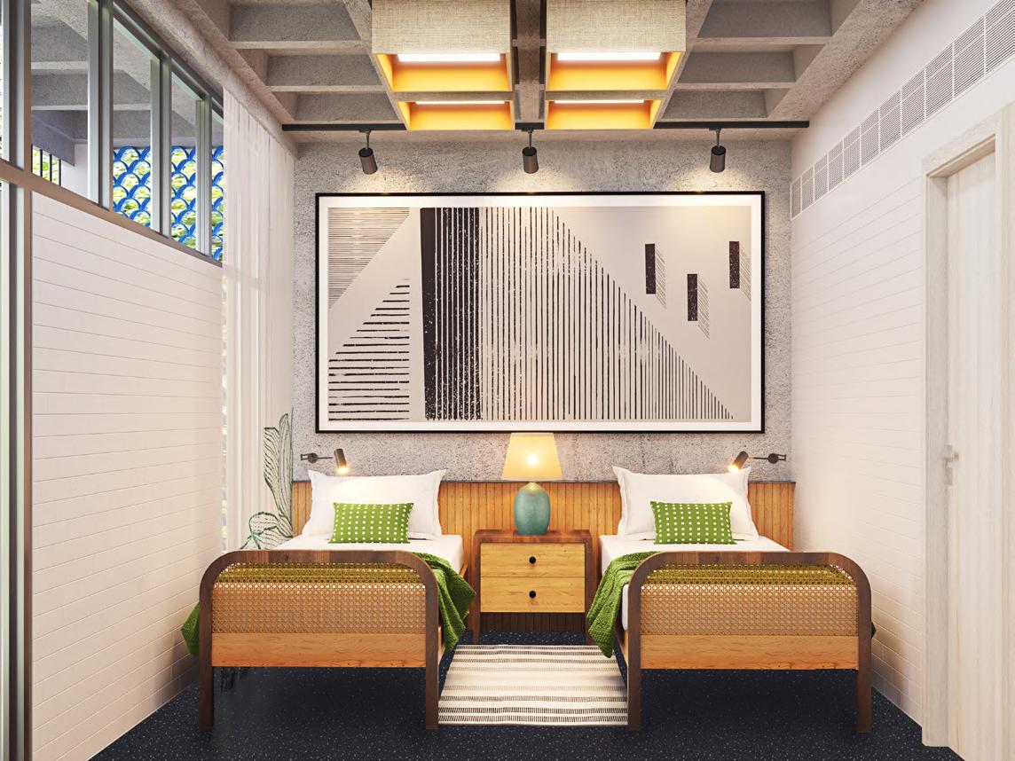 The biggest intention behind designing this project was retain the ideas put forth by the original architect Joseph Allen Stein. The project was of the renovation of 3 types of hostel rooms available in the complex, namely the Suite Rooms, Double and Single Rooms.