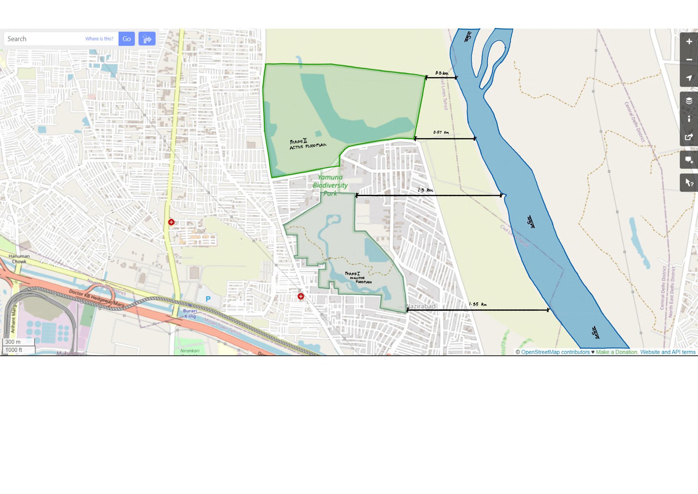 The 22 km stretch between Wazirabad barrage and Okhla barrage has 14 existing bridges and 2 more are under construction= one bridge every 1.35 km on average.