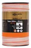 102 Rev.v1.0-2022 Ruban PowerLine 12,5mm Ruban TurboLine 12,5mm Ruban TurboLine12,5mm Ruban PowerLine 20mm Ruban TurboLine 20mm Ruban TurboLine 20mm Ruban PowerLine 40mm Ruban TurboLine 40mm Ruban TurboStar 40mm 062303 026237 076232 086231 079445 079438 079391 106236 086306 007608 060702 006246 060696 007592 072439 010608 070862 072446 010615 070879 010516 Couleur Blanc/noir Blanc/ orange Bleu Blanc/noir Bleu Blanc/orange Terra/ orange Blanc/noir Terra/noir Blanc/ orange Blanc/orange Vert/orange Terra/orange Mètres sur rouleau 100m 200m 200m 400m 200m 200m 200m 200m 200m 200m 100m 200m 350m Duopak2x200m 2x400m - - - - - -Largeur (mm) 12,5 12,5 12,5 20 20 20 40 40 40 Ø fils en plastique (nylon) 0,3 0,38 0,38 0,38 0,38 0,38 0,5 0,5 0,5 Nombre de conducteurs en acier inoxydable 4 3 3 5 3 3 11 11 10 Ø conducteurs en acier inoxydable 0,15mm 2x0,16mm 1x0,20mm 2x0,16mm 1x0,20mm 0,15mm 2x0,16mm 1x0,20mm 2x0,16mm 1x0,20mm 0,20mm 10x0,16mm 1x0,20mm 0,20mm Nombre de fils de cuivre étamés 1 2 2 1 2 2 1 4 4 Ø fils de cuivre étamé 0,25mm 0,25mm 0,25mm 0,25mm 0,25mm 0,25mm 0,25mm 0,25mm 0,30mm Fil de dentelle renforcé - • • • • • • • • Résistance (Ohm/mètre) 0,18 0,09 0,09 0,18 0,09 0,09 0,17 0,05 0,04 Résistance à la traction (kg) 65 100 100 175 200 200 450 380 520 TurboStar - - - - - - - - • TurboLine - • • • • • - •PowerLine • - - • - - • -Cheval • • - • - • • • • Bétail • • - • - - - -Gibier - - • - • - - -Longueur de fils conseilée (m) < 500 > 500 > 500 < 500 > 500 > 500 < 500 > 500 > 500 Tension au début de la clôture 8000V 8000V 8000V 8000V 8000V 8000V 8000V 8000V 8000V à 100m 6000V 7600V 7600V 6000V 7600V 7600V 6000V 8000V 8000V à 500m 4500V 6400V 6400V 4500V 6400V 6400V 4400V 7500V 7500V à 1000m 2500V 5300V 5300V 2500V 5300V 5300V 2300V 7000V 7000V Garantie UV 5 Années 5 Années 5 Années 5 Années 5 Années 5 Années 5 Années 5 Années 7 Années