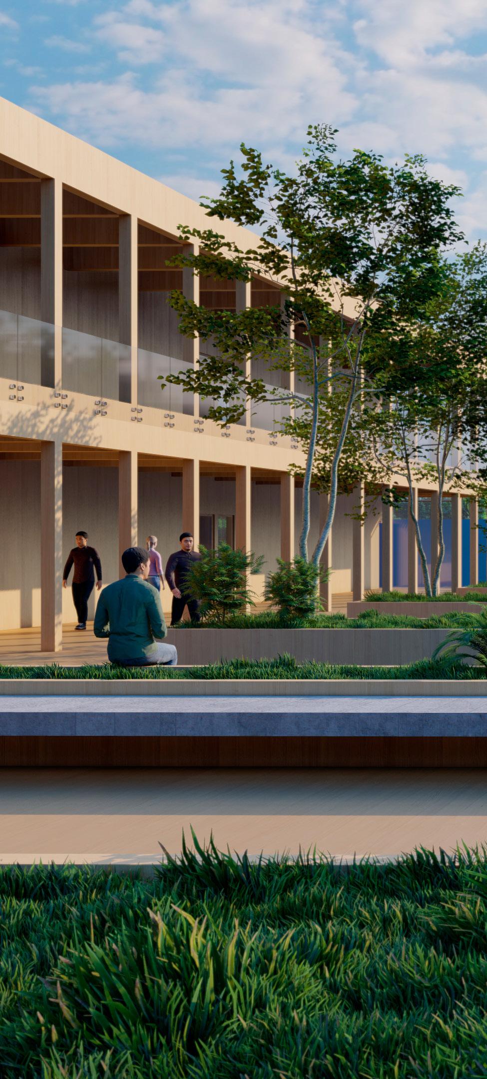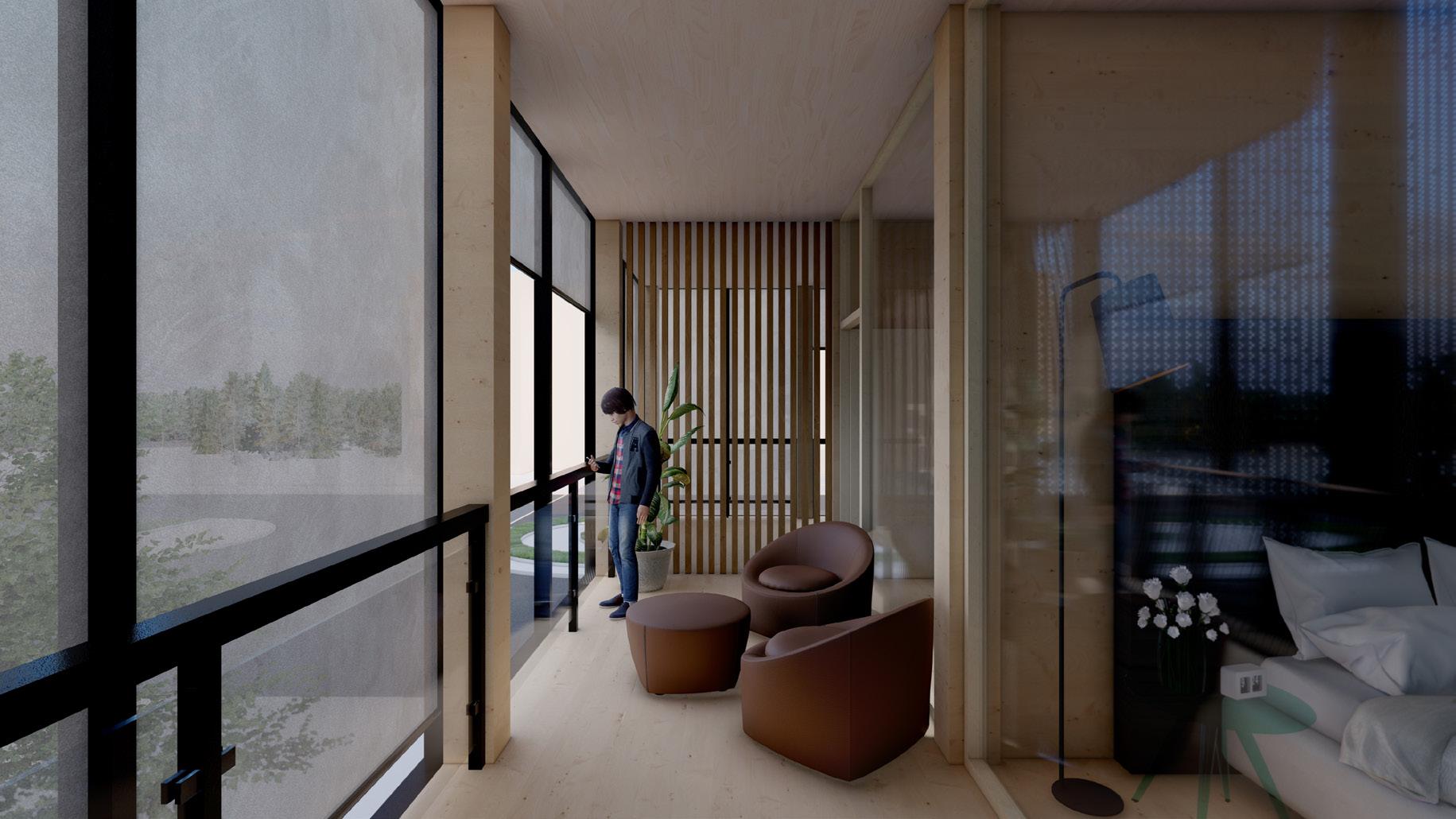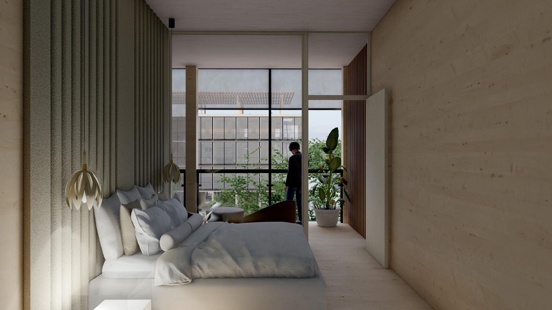 Bajo la premisa de respetar la escala de la zona y las limitaciones urbanísticas del predio, se estableció una serie de esdificios sucesivos. Estos cuentan con tres niveles de viviendas, que serán destinados para estudiantes, las cuales cuenta con el área privada hacia el este y la pública al oeste.