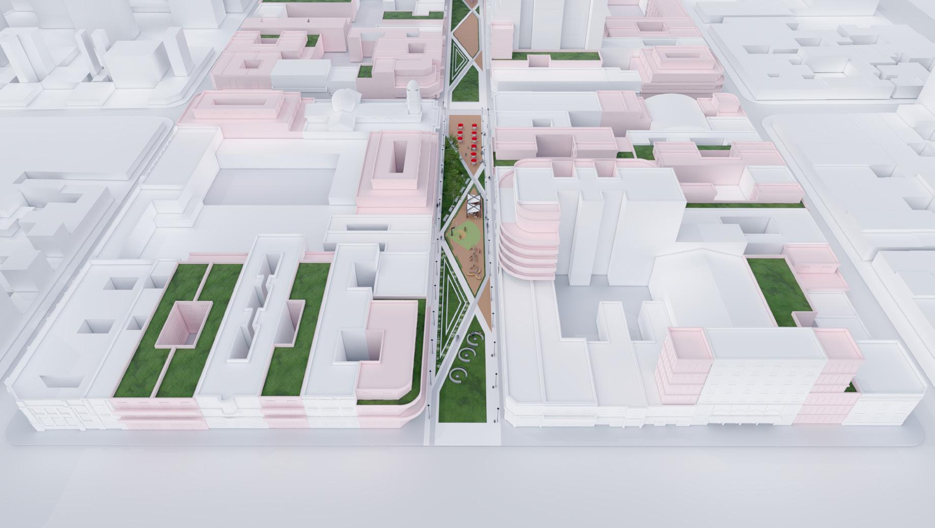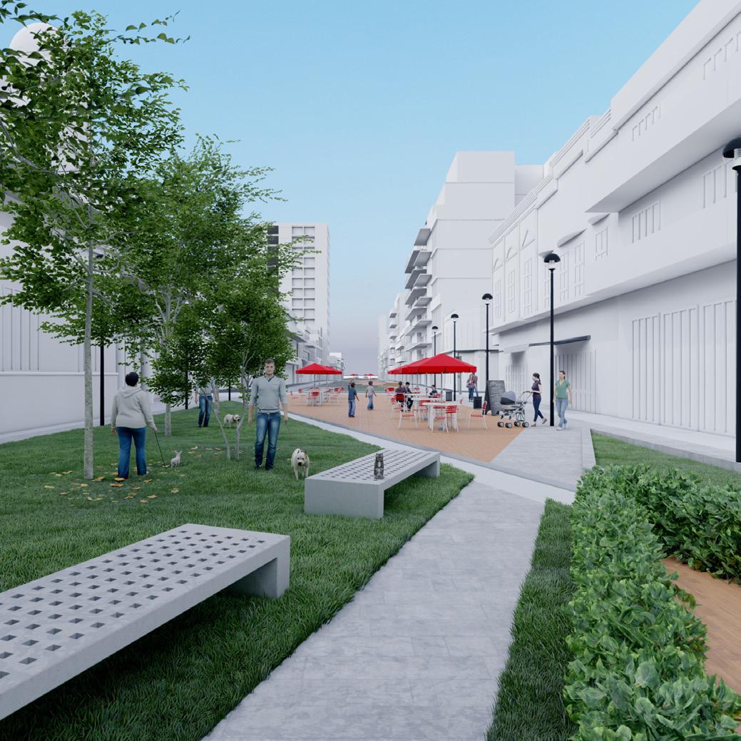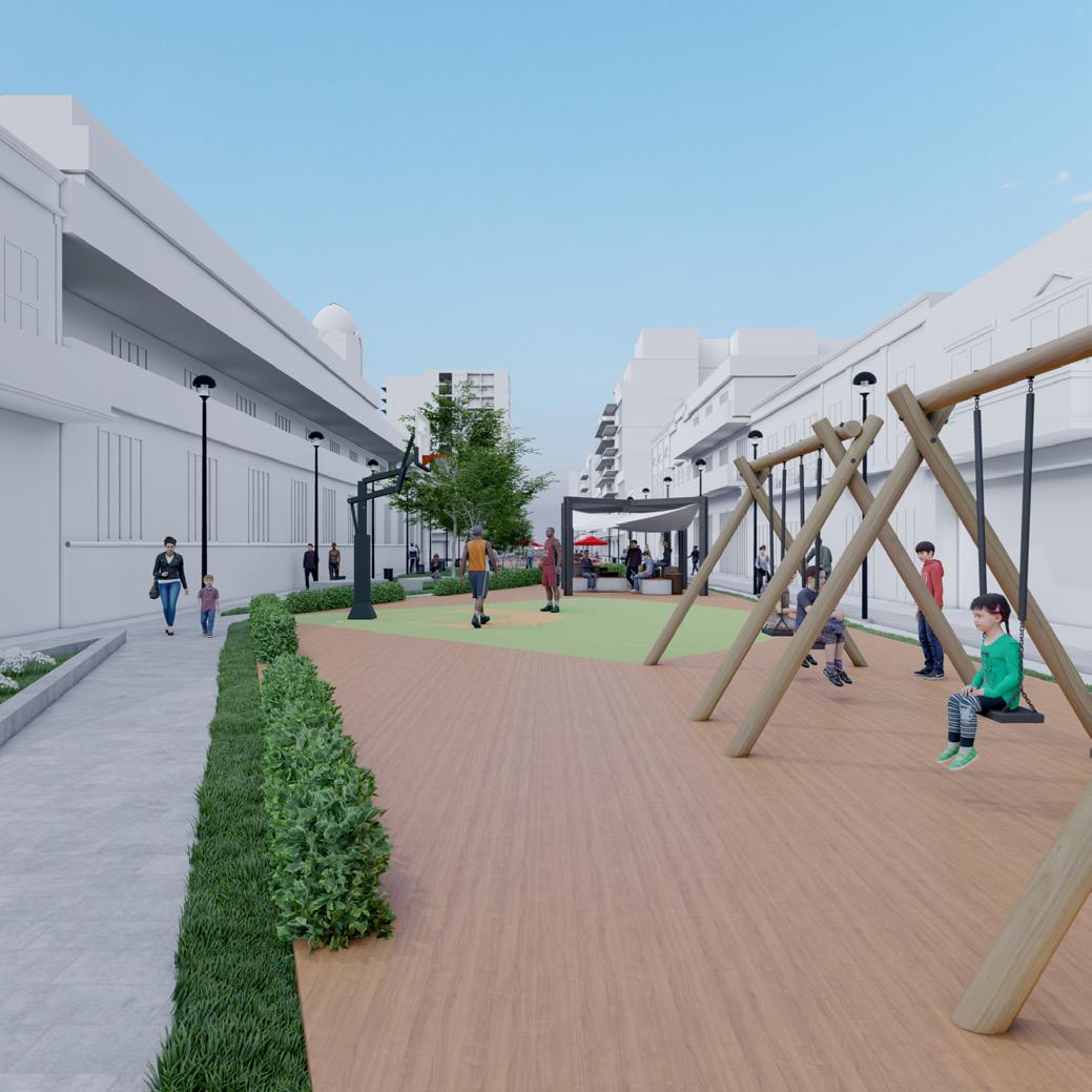 Partiendo del concepto de supermanzanas generamos distintos espacios para todo tipo de usuarios. En cuanto a las tipologías arquitectónicas se camuflaron los paredones que generan amplias medianeras, con el fin de reducir distintos tipos de murales y sectores que no ayudan a la articulación de una ciudad en densificación.