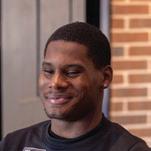 Junior Brandon Washington and Freshman Trevin Adams give their take on the helmet of the future and having their faces shown on the screen in Times Square in New York City.