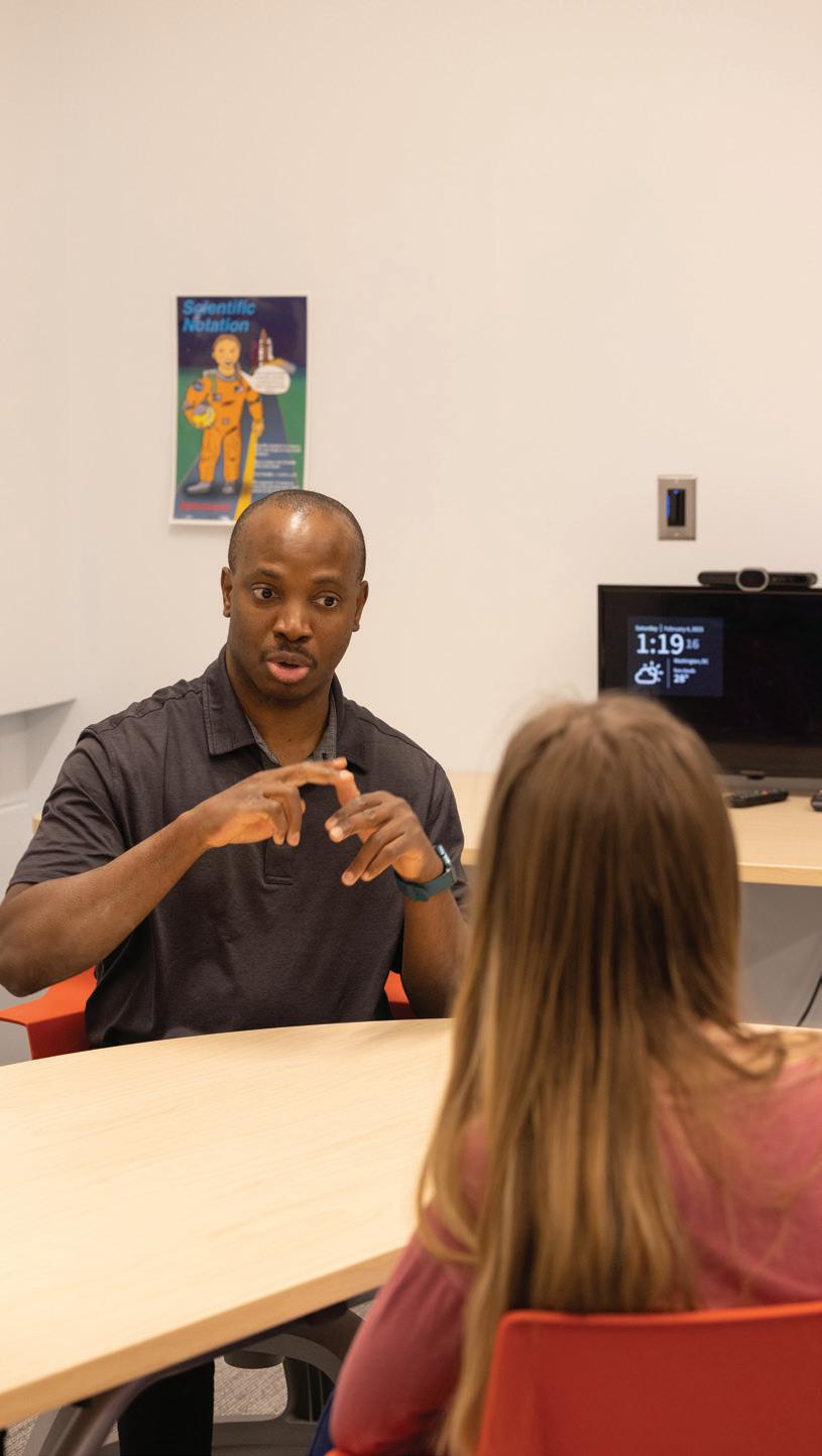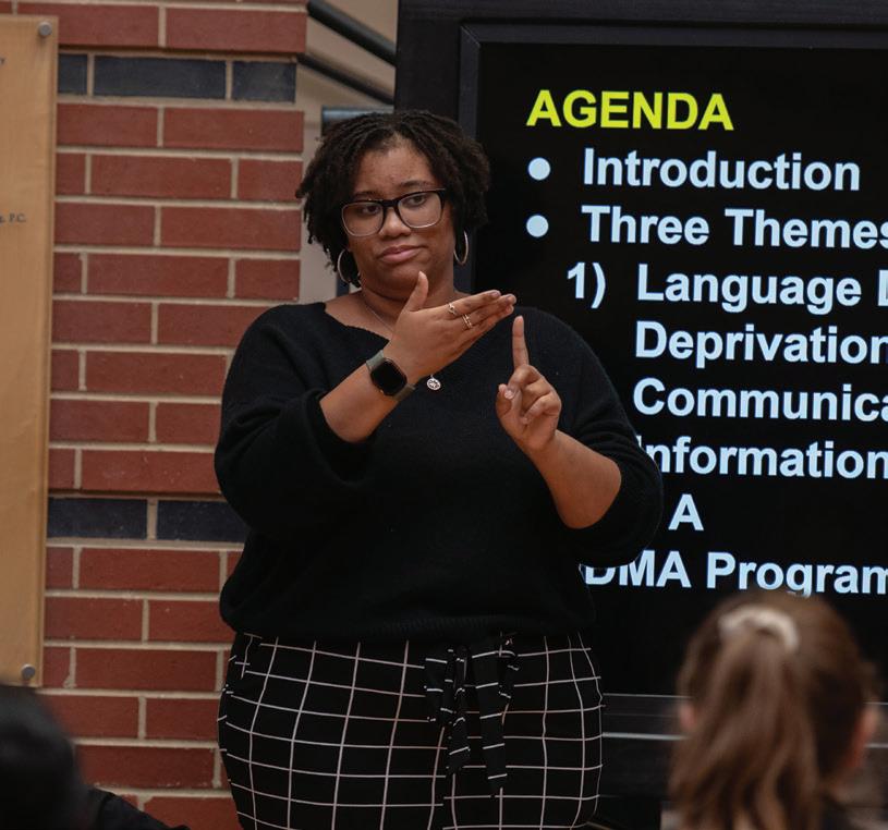 As an undergraduate, Lewis facilitated a town hall for the Black Student Union to address what support from Gallaudet looks like for BIPOC students. “Over 200 people showed up, including the president, the provost, and the dean. It was a bit scary for some students to give their opinion and speak up,” he says. This dialogue resulted in a redesigned multicultural student program with more direct support services.