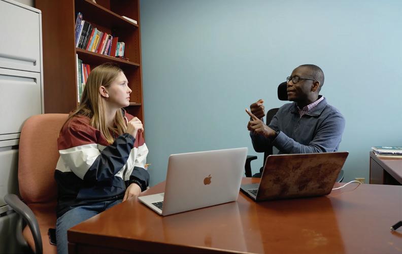 Lewis says. A class with Stern, who challenges all his students to consider various perspectives, was an eye-opening experience. One of his classmates was a DeafBlind man who was a staunch supporter of then-President Donald J. Trump. “I might disagree with my classmate,” Lewis notes, but he appreciated being able to explore his classmate’s reasoning.