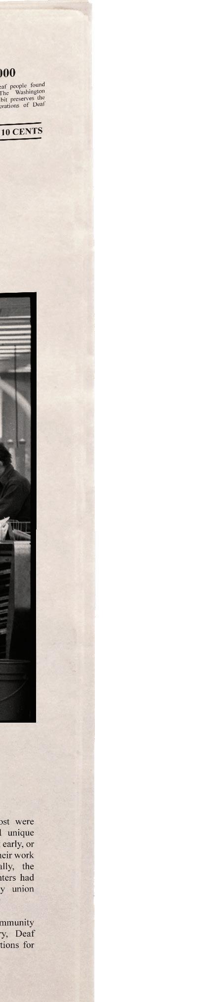 For most of the 20th century, a significant proportion of the printers employed at The Washington Post were Deaf. Donald E. Graham, the Post’s publisher for much of this time, said, “There was nothing in the composing room, there was no job I can think of, that Deaf printers didn’t do.”