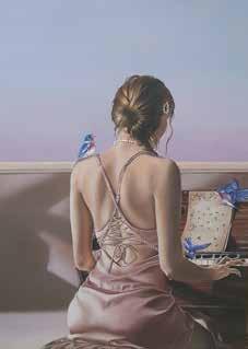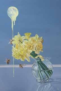 pittura minuziosa dove la luce assolve una funzione critica nello sviluppo dell’idea. La luce è come le parole per il poeta: le seleziona per formare la sua frase immortale. Ma seleziona anche quelle da non dire.L’accuratezza nella realizzazione dei dettagli , dalla fine e calibrata variazione di trasparenza dei calici, dalla delicatezza dell’incarnato fino ai morbidi drappeggi che riflettono la luce, intensifica il sorprendente lirismo delle sue opere offrendo alla vista di chi osserva una suadenteatmosfera che passa attraverso lo spazio del cuore, del sentimento, dell’emozione.