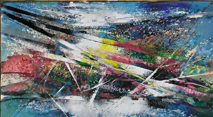 tra i colori, amalgamandoli in maniera armoniosa e fluida. La tensione tra le tonalità utilizzate diventa un equilibrio precario, che sembra sfidare le leggi della gravità e della logica, riflettendo la natura mutevole e inafferrabile delle emozioni umane. In questo modo, Rosaria Di Dio riesce a trasformare il caos cromatico in una sinfonia visiva, in cui l’osservatore può immergersi e perdersi.