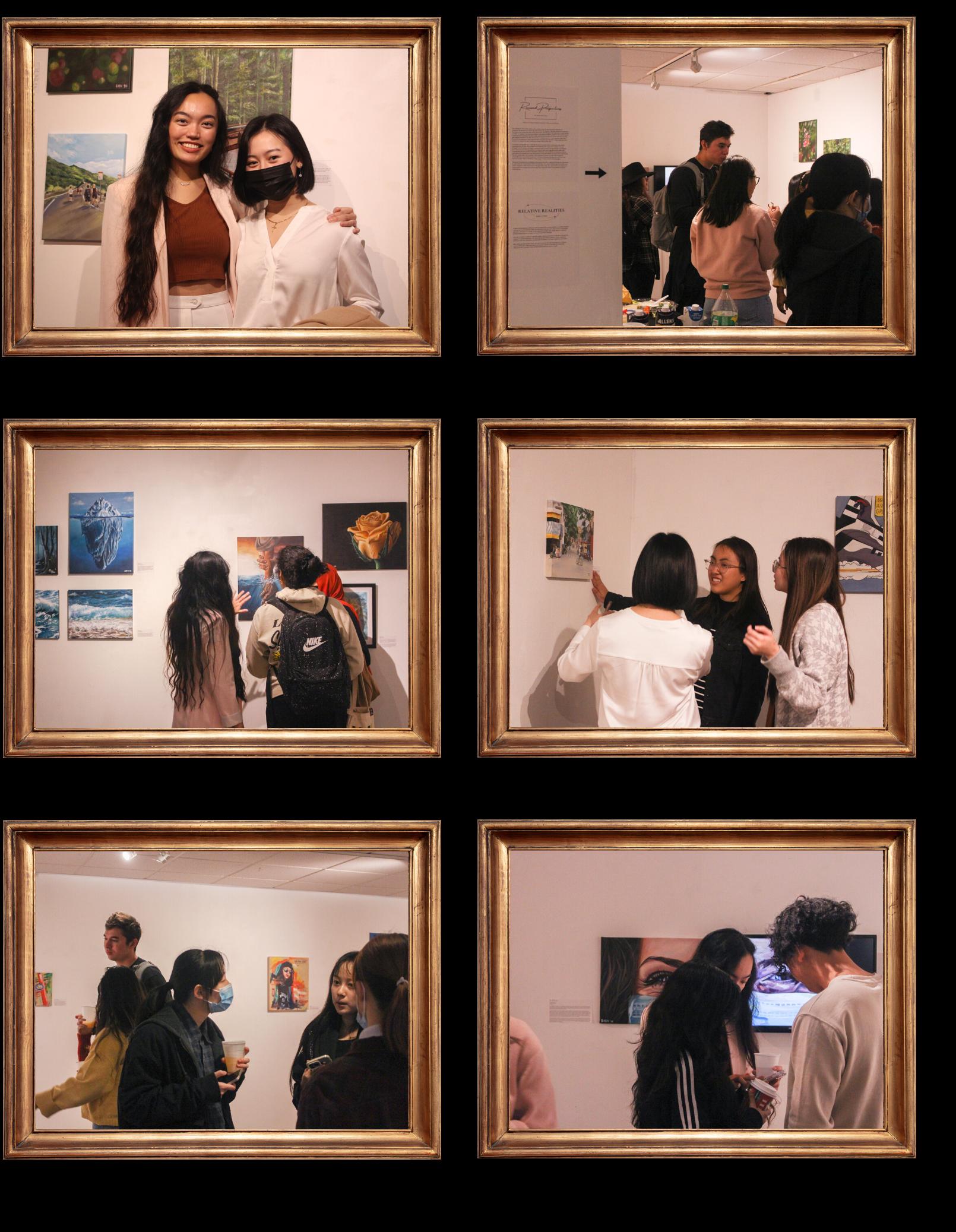 In Renewed Perspectives, we are greeted with scenes of daily life. Through simple, and colourful moments of happiness such as cake, cats, and holding hands, Shen and Thea reintroduces us to the light-hearted elements that took on very different meanings from a pre- vs. postpandemic perspective. We see scenes from nature and from everyday life (and my personal favourite, the delicious-looking birthday cake, Sweet Indulgences by Thea) in brightly coloured paintings that gives us a peek into the life of the artists. Many visitors were captured by the simple joy that the paintings exude. It seems that through art, the cautious habits that had been rooted into our daily life by the pandemic stopped existing for a moment.