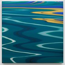 Andy’s distinctive style is simultaneously abstract and representational; the technical fluidity of his work with acrylics in Echoes of Light reflect his experiences of growing up surrounded by incredible landscapes, and serve to mimic nature and its forces. He uses a unique process of preparing layers of floating paint before allowing them to flow across the surface. Andy first began work on concave surfaces in 2003, allowing him to further play with light, as well as creating a greater feeling of depth. The concave paintings sway between pure abstraction and sweeping vistas of various types of landscapes including the ocean, desert, sky, clouds and even tectonic shifts - both real and imaginary. In the circular and hexagonal paintings, it appears as if one has zoomed in on these vistas and compressed and contorted them to suggest a new kind of space, that still alludes to organic forms but from a more microscopic or macroscopic point of view.
