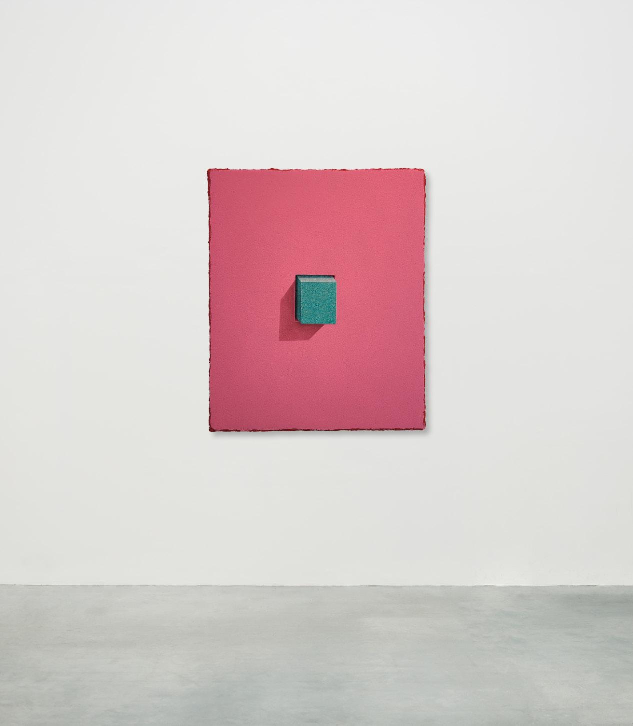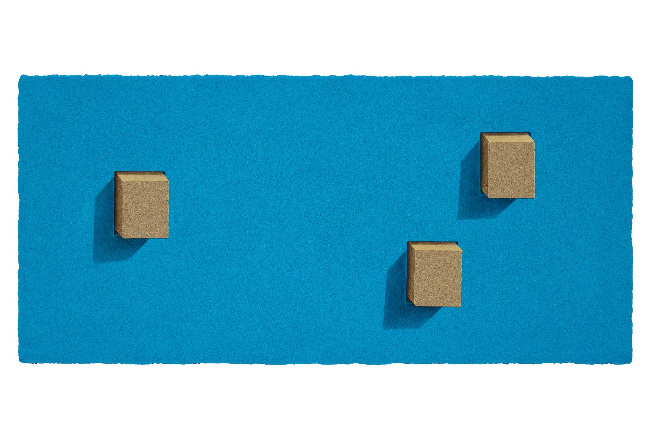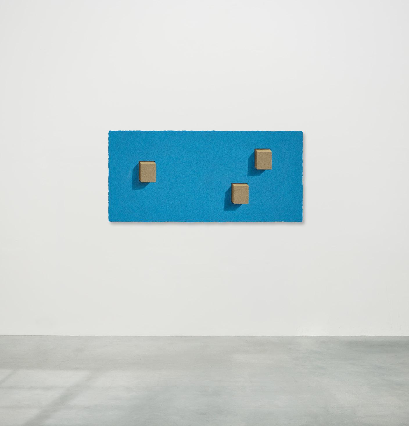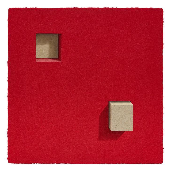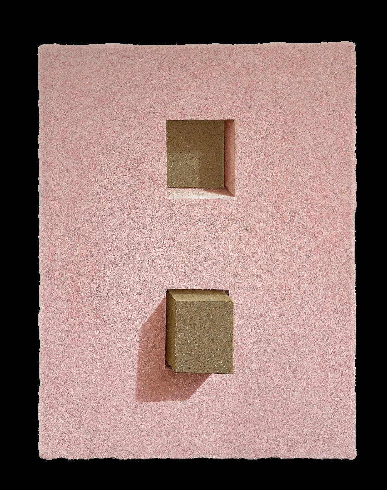 Sand and brick, his signature materials, gained new resonance through his New York experience. From a distance, the canvases appear photographic, yet up close, the densely layered grains of sand reveal themselves as tangible surfaces. This interplay between image and matter intensifies the tension between reality and illusion, compelling the viewer to ask: “What does it mean to see?”