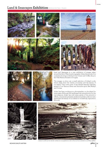 Land and Seascapes is a new exhibition of images taken around the Isle of Man by photographer Julian Simmonds. It is currently showing in Davison’s Ice Cream and Coffee shop in the Villa Marina Arcade in Douglas. The images on show are a small selection of Julian’s work, which really show the variety of scenery and the beauty of our island. They cover some of the islands beautiful beaches, several of our famous Glens and favourite spots like Niarbyl and Cornaa. Julian has been working as a photographer on the island for many years. Although the landscapes are primarily shot for his own pleasure, Julian has sold many pieces of his artwork to offices, commercial premises, banks and private collectors who appreciate the beauty of our island so wonderfully captured in his work.