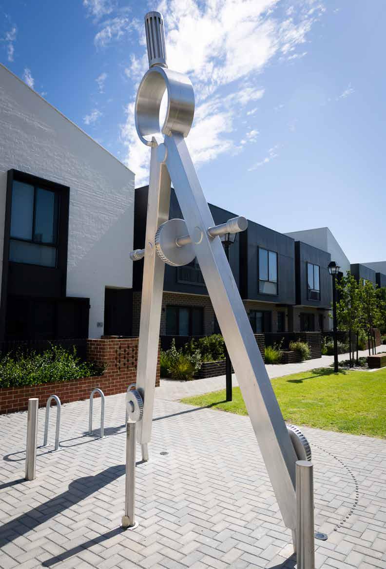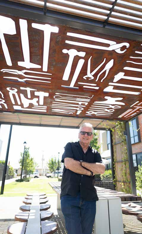 “Stuart Green’s works in Atkinson Road are striking and impressive in size, shape and texture and also connect with the history of that part of Subiaco when there was a ceramics factory on the site,” says Mark, who would then walk through Carter Lane Park to take in views of the captivating sculpture, Curl(2021).