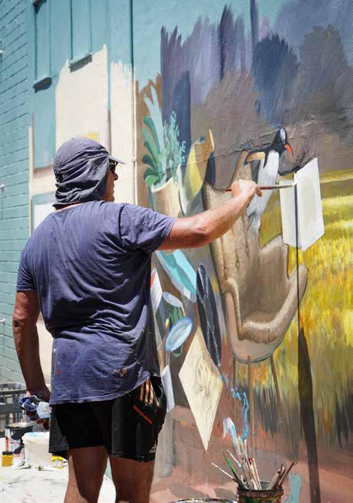 The council bought the idea for the festival, which was christened No More Blank Walls Subi, and thousands of people descended on the city in midOctober last year to watch the artists at work, attend artists talks, join tours, take part in paint-and-sip nights and, most spectacular of all, watch a live mural battle between street art superstar Sofles and Perth’s spray can powerhouse ArtByRow.
